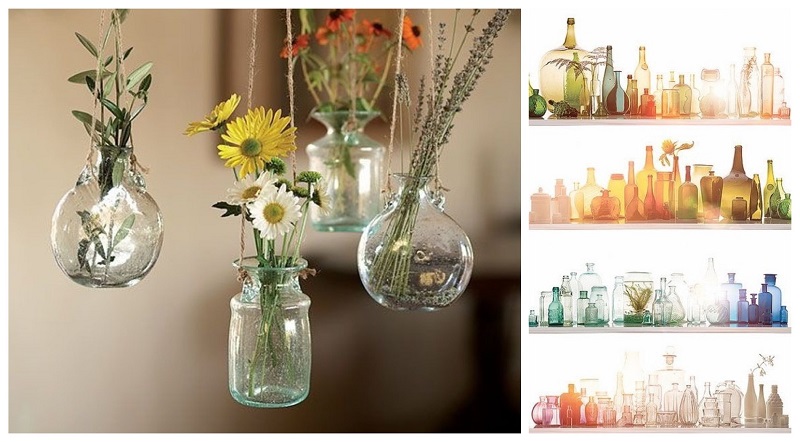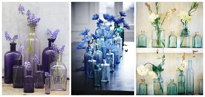 Хрустальные красавицы дождутся праздничных и нарядных букетов, а для летнего баловства можно использовать что-нибудь лёгкое и простое. Стеклянные лаконичные вазы, стилизованные колбочки от лампочек или даже обычные бутылочки — всё это может быть украшено свежими цветами.