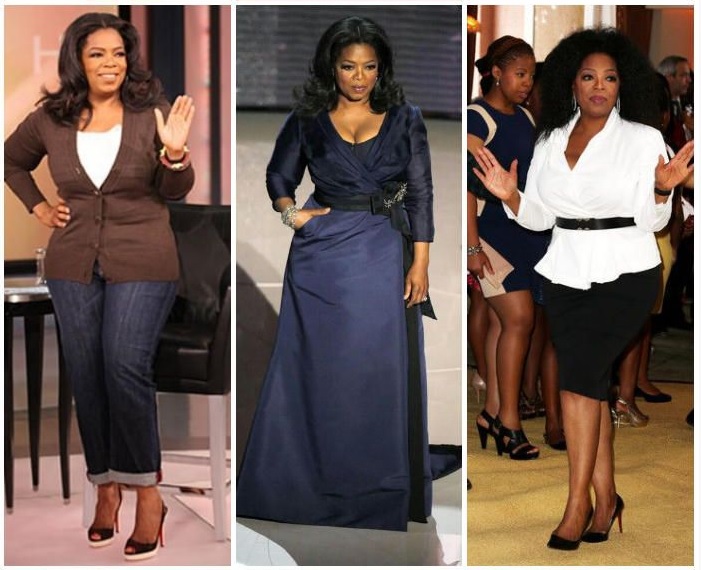 Опра Уинфри — одна из самых успешных и богатых женщин в мире, популярная и любимая во многих странах телеведущая, глава компании Harpo Studios (компания по производству ТВ-шоу), одна из самых стильных телеперсон. Её называют «черной жемчужиной», своим появлением на телеэкранах она произвела настоящую революцию и фурор, сломала стереотипы о том, что телеведущая непременно должна быть худой блондинкой с белой кожей. Опра не побоялась, что камера прибавит ей еще несколько килограммов, и стала королевой ток-шоу. У Опры талант слушать и слышать людей. Её судьба не из легких: она взошла на олимп популярности из социальных низов, к тому же в её семье об одежде думали в последнюю очередь. Опра пережила насилие, наркозависимость, приют для трудных подростков, потерю ребенка, попытку суицида. Всё это помогло ей в дальнейшем чутко слышать людей, сострадать, проявлять участие и искренность. Она сказала: «Я не пытаюсь изменять людей. Я пытаюсь показать им, что они собой представляют». Её стиль отличается эффектной и элегантной простотой, лаконичностью, сдержанностью, аристократическим лоском. Она, как и многие женщины с пышными формами, старалась похудеть, делилась результатами со своими зрителями, но в конечном итоге приняла и полюбила себя такой, какая она есть, и стала так называемой иконой стиля и примером для подражания многих женщин со всего мира.