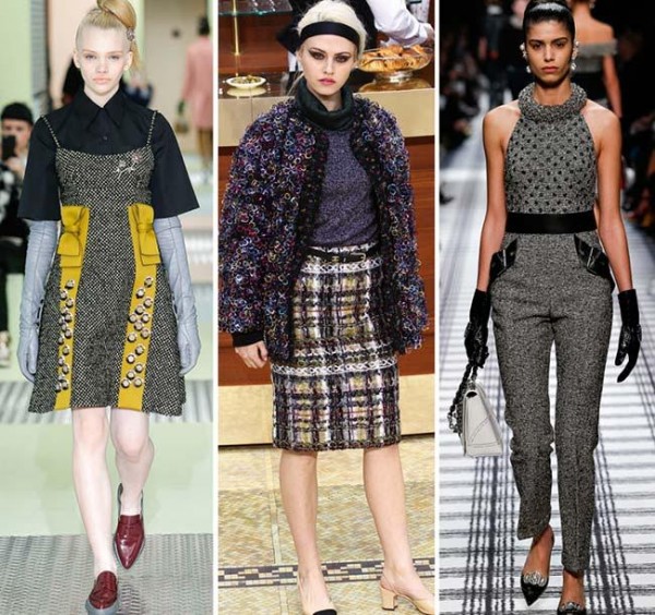 Еще один чудесный тренд для осени и зимы. Пока легендарная Коко Шанель не вмешалась, этот материал считался исключительно мужским. Но теперь его с большим удовольствием носят красавицы всего мира. Он теплый, приятный и чрезвычайно подходящий для осенне-зимнего гардероба. Костюмы, юбки, платья, сарафаны, комбинезоны, брюки, жилеты, топы, жакеты — всё это доступно в твиде и очень актуально. У твида есть особенность придавать одежде английскую собранность, дорогой шик и ненавязчивую роскошь.
