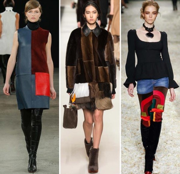 Лоскутная техника на пике популярности сегодня. Наступающей осенью и зимой она используется не только в платьях, джинсах, пончо, туниках и сарафанах, но и в дубленках, шубах, пальто. При этом лоскутки могут быть как миксом из разных материалов, так и из одного и того же материала. Особенно эффектно смотрятся лоскутки из замши и кожи. Также очень популярны сумки и рюкзаки в стиле пэчворк.