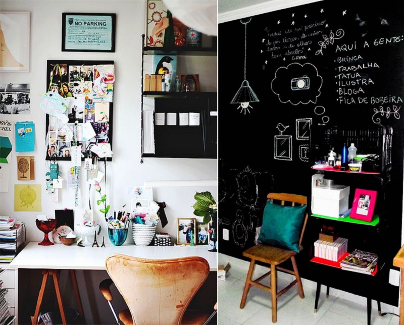Гораздо интереснее, когда она есть, чем когда её нет, не так ли? Задумывались ли вы о том, чтобы добавить к обычной доске грифельную? И, кстати, на эту доску можно вешать не только красивые открытки и фотографии. Почему бы не приколоть к ней билетик в кино, засушенный цветок или маленькую мягкую игрушку? И обновлять хотя бы раз в несколько месяцев.