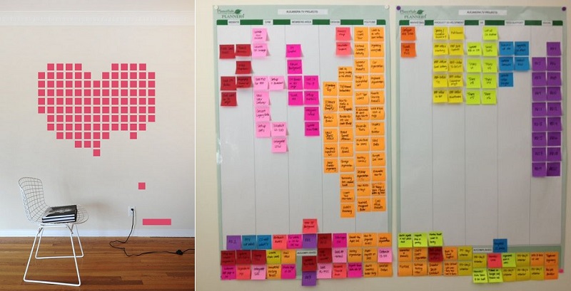 Не успеваешь, зашиваешься, путаешься в паутине дел и совершенно не имеешь представления, как из неё выбраться… Книги по тайм-менеджменту учат успевать всё, не жертвуя ничем, но чтобы прочитать эти книги, тоже нужно время. А его нет. Если вам, как и мне, отчаянно не хватает 24 часов в сутках и нужно минимум часов 36, то наверняка приходилось составлять списки дел. Впрочем, составлять их можно по-разному. Это не совсем очевидно, но форма, в которую вы облекаете список дел, может сильно повлиять на продуктивность. Вот семь способов фиксировать свои to-do-листы. Клейкие листочки Их можно развешивать перед глазами на рабочем столе — или вдоль своих обычных «дорожек» по квартире. Можно завешивать монитор со всех сторон или отвести отдельное пространство на стене. Главное, чтобы каждому листочку соответствовало одно дело. И как только дело сделано, листочек нужно снять и выбросить! Длинный список Бывает так, что одна задача разрастается в огромную и неподъёмную. Тут-то и настаёт самое время сесть и аккуратненько разложить задачу на подпункты. Самое увлекательное — это наблюдать, как по ходу составления списка со сложной нумерацией, кое-где доходящей до трёх, а то и четырёх уровней, в голове наступает ясность, и сам список уже не так и нужен. И без него понятно, что и как делать. Картинки на салфетках Наше сознание гораздо легче и проще воспринимает картинки, чем текст. Именно поэтому многие психологи, специалисты по тайм-менеджменту и дизайнеры настоятельно рекомендуют почаще применять в работе картинки. Причём Дэн Роэм, автор книги «Практика визуального мышления», настаивает, что картинки должны быть настолько просты, чтобы их можно было нарисовать на салфетке за пять минут. Только в этом случае они действительно помогут решать проблемы, а не создадут дополнительные. Ежедневник Лучшие ежедневники — это ежедневники с непроставленными датами. Фактически, это залог успеха. Когда все дни пронумерованы за вас и вы пропускаете несколько, мелькает мысль: «Ну вот, всё, я сбилась. Дальше можно уже не продолжать, дни упущены, вон сколько страниц пустых…» Почему-то когда есть возможность сделать перерыв, а потому вернуться без потерь, гораздо проще возобновлять прерванное. Вот почему все мои ежедневники — только с днями недели, но никогда не привязаны к конкретным датам. Грифельная доска С самым настоящим мелом. От этого веет школой, детством и приключениями. А ещё на этой доске можно рисовать! Можно использовать вместо грифельной доски доску для маркеров, хотя это, конечно, чуть менее увлекательно. Напоминания Сейчас почти в любом телефоне (не говоря уже о смартфонах) есть специальное приложение для тех, кто всё время забывает о важных делах из-за их количества: напоминания. Если что-то конкретное, что вы боитесь забыть, нужно сделать в определенное время, смело вносите его в свой мобильный! И ставьте будильник. Электронные планировщики В офисной жизни зачастую не обойтись без электронного планировщика, который совмещает в себе ежедневник, списки дел и напоминания — и всё это «живёт» под рукой! А точнее, перед глазами. У подобных программ обычно достаточно много удобных функций, главное — их изучить. Главная беда в том, что любой список дел нужно составить. И сделать это тщательно и разумно. Пока научишься, многократно бросишь с мыслью: «Никогда мне н