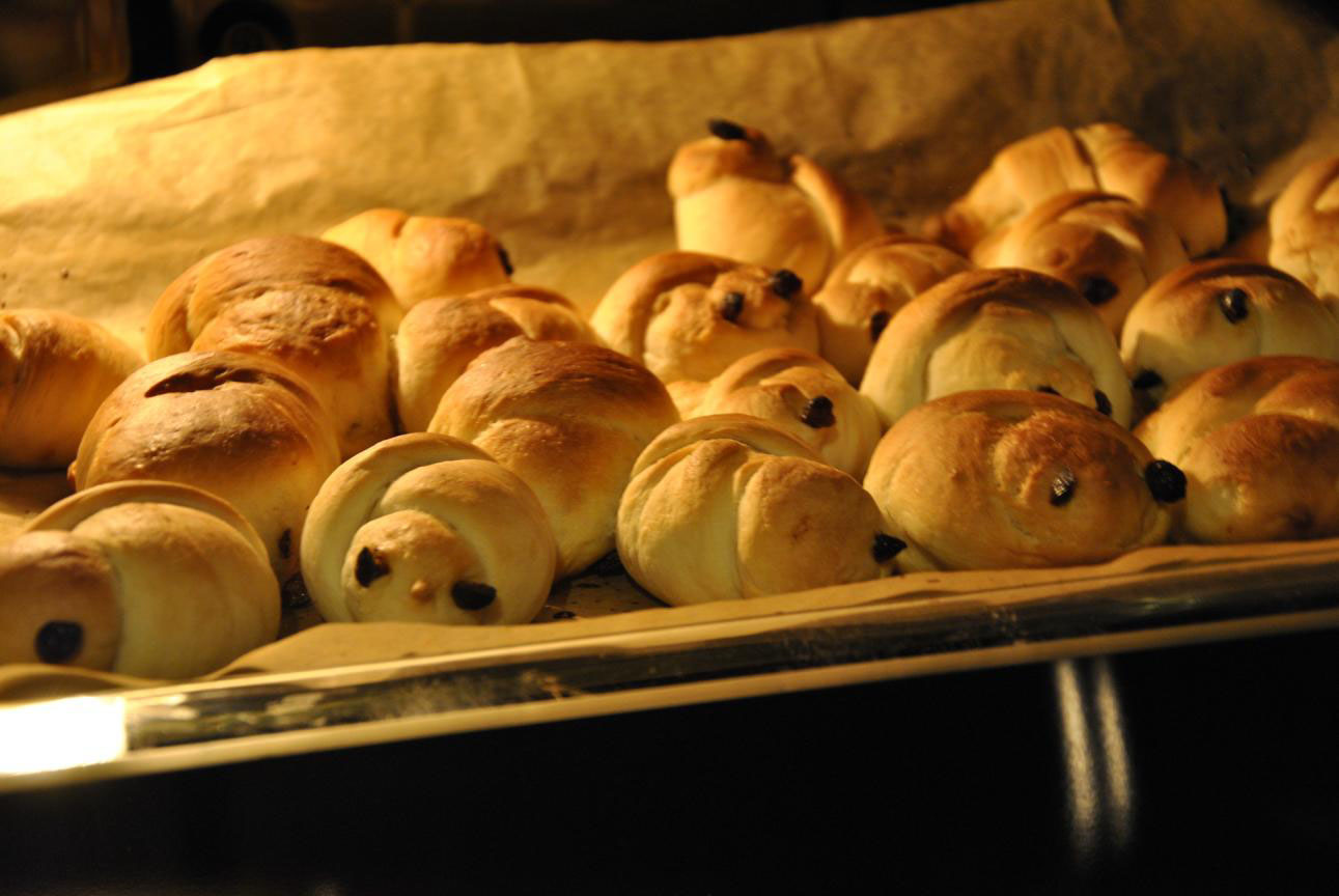 Число «жаворонков» должно было быть не меньше 40. «Жаворонки» были в основном детским лакомством. Сладких птичек раздавали детишкам, а те насаживали их на длинные тонкие палки, бегали с ними по деревне и зазывали весну песенками-веснянками. Вдоволь набегавшись, дети съедали «птичек», хвастаясь, у кого вкуснее да красивее мамка печет.