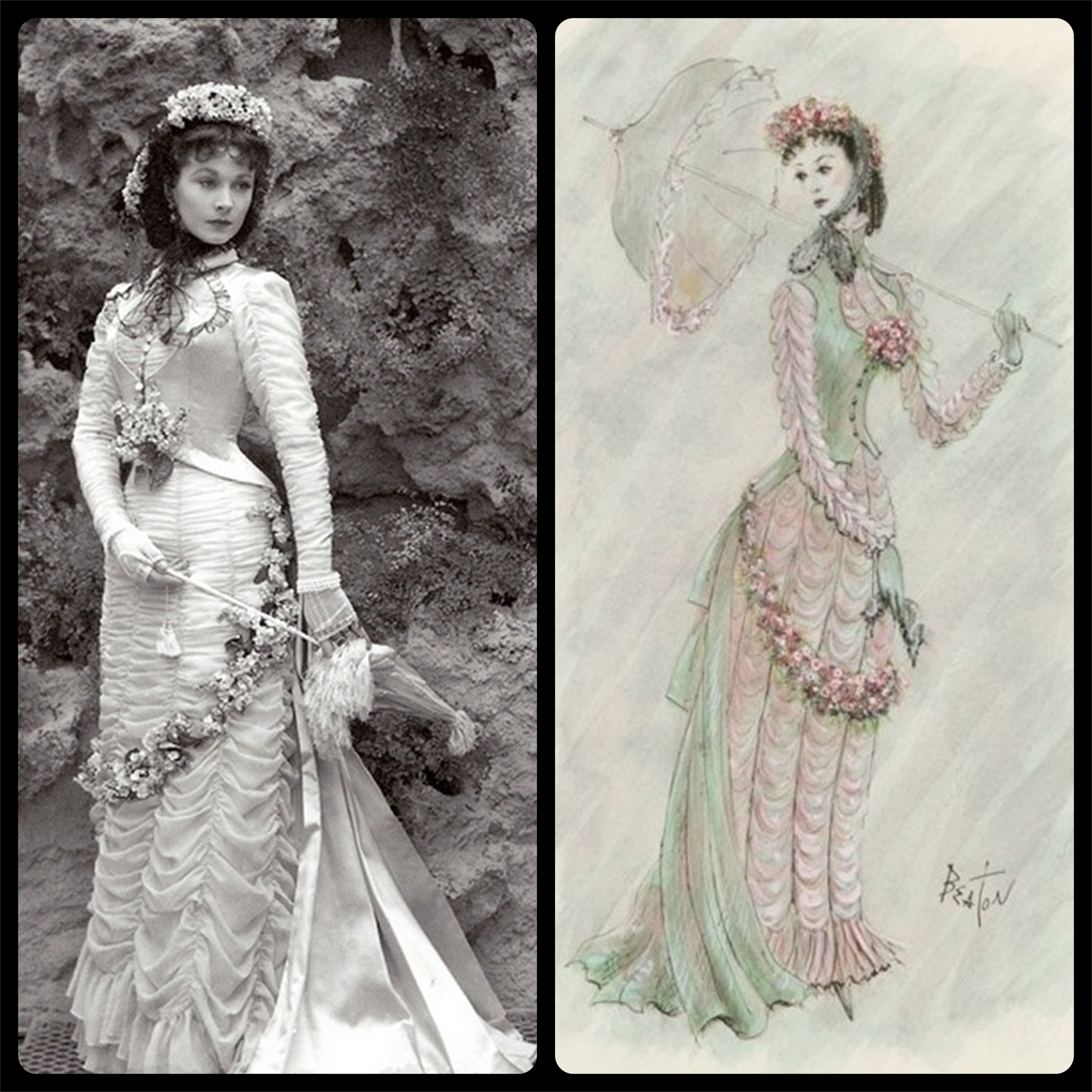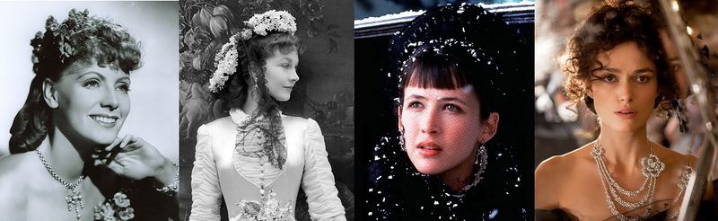 Да, любят ставить нашу классику за рубежом, очень любят. А из русских писателей — экранизировать книги Льва Николаевича Толстого. Началось это еще со времен немого кинематографа и продолжается до сих пор. Иногда уже хочется закричать: «хватит, горшочек каши, не вари!». Разглядывая кадры из последнего фильма «Анна Каренина» с Кирой Найтли в главной роли, мне в голову пришла идея вместе с вами вспомнить костюмы к четырем другим популярным иностранным экранизациям (всего их в мире насчитывается около 30-ти). (В этом ролике присутствует и наша версия «Анны Карениной» о которой я говорить не буду, поскольку о советских экранизациях надо писать отдельно). Фильм 1-й. Грета Гарбо и Джон Гилберт в Любви (1927 г). Кадр из фильма Love Самый ранний немой фильм, снятый по «Анне Карениной», который я видела, был фильм «Любовь» с прекрасным актерским дуэтом Грета Гарбо (Анна) — Джон Гилберт (Вронский). Пикантность и популярность этому фильму добавляла реальная лав-стори между этими двумя актерами. С экрана в зал просто искры летели от бушующей неподдельной страсти! Отсюда, в рекламных целях, было придумано такое название: «Любовь», чтобы на афишах читалось: Грета Гарбо и Джон Гилберт в любви. Кадр из фильма Love Кадр из фильма Love Костюмы соответствовали времени съемок фильма, т.е. 1927 году, и были по-своему эффектными. Отвечал за актерский гардероб Гилберт Кларк. Cцена на скачках в фильме Love Забавно, что у фильма существовало два разных финала: семейное счастье Анны и Вронского после смерти Каренина (именно такой смотрела я, представьте себе мой шок!) — для проката в США, и трагический — для проката в Европе. Фильм 2-й. «Анна Каренина» от Адриана (1935 г.) Грета Гарбо так прониклась к этому персонажу, что в 1935 году снова снялась в еще одной версии, уже звуковой. В этот раз фильм так и назывался «Анна Каренина». Говорят, Гарбо не могла найти общий язык с актером, играющего Вронского, «химии» не получилось… Кадр из фильма «Анна Каренина» (1935 г.) Кадр из фильма «Анна Каренина» (1935 г.) За платья героини здесь отвечал легендарный художник по костюмам Адриан, и они уже стилизованы под описываемую в романе эпоху. Кстати, а как же выглядела женская мода времен Анны Карениной? Роман «Анна Каренина» писался в 1873—1877 годы, публиковался в журнале в 1875—1877 годы. Значит, в фильмах должны быть платья конца 1870-х годов. М. Врубель. Иллюстрация к «Анне Карениной» 1887 г. Мода 1875 года Женское платье того времени было не таким широким, как в середине XIX века, но имело шлейф и турнюр. Dress, Afternoon Grace King (American) 1870–75 Два варианта турнюра Оно было перегружено всевозможными деталями, драпировками, бантами, вышивками и являло собой настоящее произведение портновского искусства. Подлинные платья 1875-77 гг. Платье 1876-78 гг. Вернемся к платьям Адриана. Дизайнер не являлся поклонником аутентичного подхода к костюму, я уже писала это в постах о фильмах «Мата Хари» и «Мария Антуанетта». «Анна Каренина» не стала исключением. Грета Гарбо в фильме «Анна Каренина» (1935 г.) Грета Гарбо в фильме «Анна Каренина» (1935 г.) и платье, проданное на аукционе за 40 000 $ К сожалению, это не лучшая работа Адриана. Создается ощущение, что без обильных блесток и перьев художнику было скучно. А вот чего в фильме много, так это оборок и кружев. На мой вкус, рюши и Гарбо — вещи несовместимые, но Адриану так не казалось. Фильм 3-й. «Анна Каренина» от Се