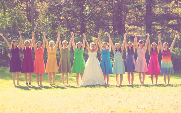 На моей свадьбе половина девушек пришла в белом. Не то, чтобы их просили специально выбрать другие цвета, но, по-моему, само собой разумеется, что нельзя сливаться с невестой. Это по крайней мере невежливо. Мне было немного обидно.