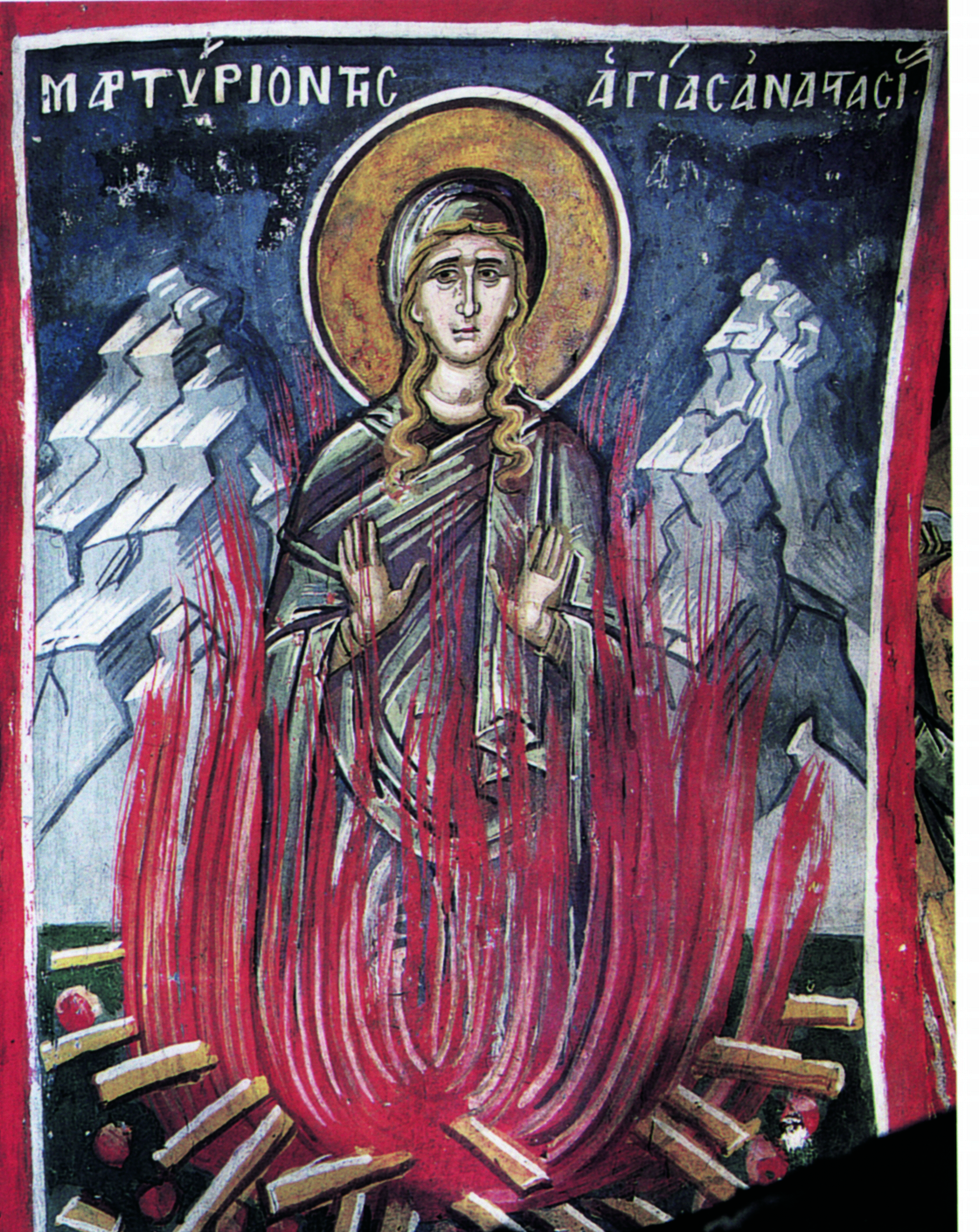 Святая Анастасия Узорешительница – еще одна девица из сонма христианок-мучениц 3-4 веков. Знатная римлянка, умница-красавица, девственница и олицетворение кротости и стойкости одновременно. Однако есть в ее житии нечто, что не просто выделило ее из количества похожих святых, но и дало свое особое прозвание: Узорешительница. Как несложно догадаться, речь идет о тюрьмах. Что же делала Анастасия, что прославило ее память именно таким словом?.. *** Отец Анастасии был богатым римским язычником, мать – тайной христианкой. Она приставила к дочери надежного учителя по имени Хрисогон, который обучил девушку многим премудростям и вере во Христа. Это привело к тому, что Анастасия страстно желала сохранить девство и быть невестой Христовой, а потому, когда после смерти матери отец насильно выдал ее замуж за язычника Помплия, всеми правдами и неправдами отказывала мужу в супружеской близости, выдумав себе неизлечимую женскую болезнь. Естественно, это сильно раздражало ее супруга, так что он ждал только подходящего повода, чтобы расправиться со своей непокорной женой. Очень часто Анастасия переодевалась в скромное платье и, в сопровождении одной служанки, отправлялась в городские тюрьмы, где томились преимущественно христиане – впрочем, девушка не делала различий. Она подкупала стражников, чтобы те пропускали ее в темницу, а потом служила заключенным, как могла: приносила им купленный на свои средства хлеб, омывала их грязные тела, перевязывала раны, подавала питье. Долго так продолжаться не могло, подобные отлучки из дома не могли пройти незамеченными, да и служанка рассказала своему хозяину, что они с Анастасией ходят в тюрьмы и помогают узникам. Помплий пришел в ярость, избил жену и запер ее под домашний арест. Больше всего девушка скорбела о том, что теперь больше не может облегчать участь заключенных – и, в первую очередь, своего наставника Хрисогона, который к тому моменту уже долго томился в темнице как христианин. Известно, что учитель и ученица смогли обменяться несколькими письмами, в которых Анастасия изливает свои переживания о невозможности оказывать помощь узникам и рассуждает о своем нечестивым муже, его кознях и своих возможных страданиях за Христа, а так же просит молитв Хрисогона. На это он отвечает подробно и обстоятельно, поддерживаю девушку словами из псалмов, а так же пророчествует о скорой гибели Помплия. Так и случилось – отправившись в очередную деловую поездку, муж Анастасии утонул, а она обрела свободу и право распоряжаться своим огромным состоянием. Девушка возобновила свои походы в тюрьмы, только теперь ей не надо было прятаться, она могла делать свое дело открыто. В это время царь Диоклетиан в очередной раз зверствовал в своих гонениях на христиан. Он велел казнить всех заключенных, исповедующих Христа, кроме одного – учителя Анастасии Хрисогона. Царь знал, что этот человек пользуется огромным авторитетом, а потому надеялся добиться его отречения и таким образом пошатнуть веру прочих. Несмотря на все убеждения и угрозы, будущий мученик оставался тверд и спорил с царем, приводя в подтверждение своих слов не только цитаты из Писания, но и выдержки из авторов-язычников. В конце концов, Хрисогону отрубили голову, а тело его бросили на берегу моря, где его подобрал живший неподалеку пресвитер Зоил. Спустя некото