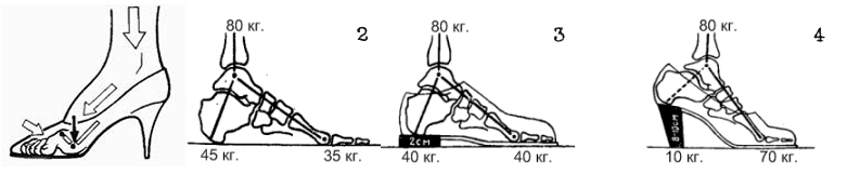 Мода диктует нам свои правила. Высокие каблуки и угги – это наша ежедневная обувь. Но проходят годы, часто – совсем немного, и возникают проблемы, а мы и не догадываемся о причинах их появления. Поэтому лучше позаботиться о своём здоровье сегодня. Высокие каблуки Да, высокие каблуки привносят в образ женственность и утончённость, мы в них более нарядные, ноги визуально кажутся более длинными, и мужчины чаще обращают внимание на наши ножки, если мы на каблуках. Но какой ценой мы все это приобретаем? Каждая женщина должна знать: если высота каблука равна 7 см, то мысок испытывает нагрузку в 2 (!) раза больше, чем обычно. И при этом нагрузка идет не только на стопу, но и на позвоночник, которому приходится изгибаться в пояснице, чтобы мы держали равновесие, что в свою очередь дает огромную нагрузку на межпозвонковые диски, и может, в том числе, стать причиной грыж. Высокий каблук обеспечивает неправильное распределение нагрузки на мышцы и суставы, ухудшается приток крови к голове. При длительной ходьбе на высоких каблуках, нагрузка, которая должна распределяться по всей стопе, падает на ее переднюю часть, женщина ходит как бы на цыпочках. Если, вдобавок, она несет сумку с продуктами, то нагрузка на стопу увеличивается еще в несколько раз. Поэтому, если вам предстоит длинный день на ногах, покупки, или тем более вы беременны, хорошо подумайте о своем здоровье, прежде чем надевать в этот день высокий каблук. В результате неестественной нагрузки поперечный свод стопы уплощается, а большой палец стопы отклоняется во внутреннюю сторону, что со временем даже у молодой женщины образует стопы с шишками, а вот с возрастом в больных суставах могут возникнуть и болезненные необратимые процессы – артрит и даже артроз. Что же нам делать? Я сама женщина и люблю высокие каблуки. Но мои ноги уже дали о себе знать, и я не могу теперь так легкомысленно относиться к их здоровью и своему самочувствию. Какие я нашла для себя варианты решений: Если я иду в гости, я не хожу целый день в туфлях, а беру нарядную обувь с собой; Туфли на каблуке выше 5 см нельзя носить больше 2-3 часов в день. Но и этого достаточно, чтобы произвести впечатление; Если вам предстоит день на каблуках, обязательно используйте межпальцевые корректоры (продаются во многих аптеках, цена не превышает 400 р.). Они мягкие, силиконовые, бывают прозрачные или телесного цвета. Кроме вас о них никто не будет знать, но это поможет предотвратить отклонение и разворот большого пальца и образование шишки, что в дальнейшем, увы, исправить будет уже нельзя. И, помимо болезненных ощущений, о туфельках с острым носиком и открытых босоножках можно будет забыть уже навсегда. Также есть корректоры для всех 5-ти пальцев стоп (предотвращает деформацию пальцев и образование натоптышей). Кроме того, могут помочь силиконовые корректоры, которые устанавливаются прямо под стопу рядом с пальчиками. Они бывают поперечные и каплеобразные, созданы для предотвращения поперечного плоскостопия при хождении на каблуках. Бывает еще комбинированный Т-образный вариант, который и обеспечивает профилактику плоскостопия, и заваливание переднего отдела стопы внутрь. — Ещё могу упомянуть о специальных термоформирующихся стельках конкретно под вашу ножку, которые под воздействием температуры размягчаются, принимают форму именно Ваш