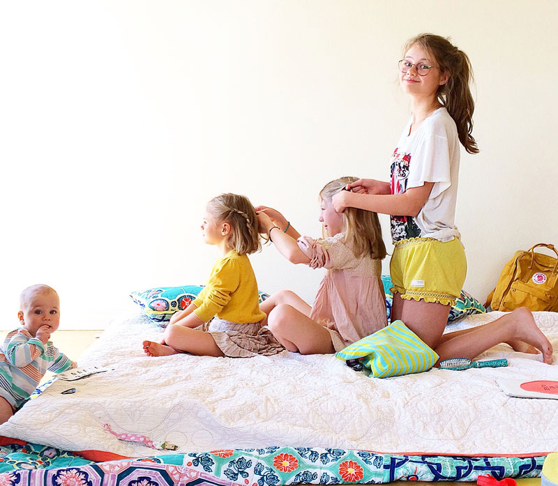 Один день очень большой семьи Дети: Эмили (14 лет), Фелисия (12 лет), Габриэль (10 лет), Элизабет (6 лет), Нуэль (1 год) Топ-3 книг и фильмов, любимых детьми: Астрид Линдгрен «Мадикен», Лаймен Фрэнк Баум «Удивительный волшебник из страны Оз», Антуан де Сент-Экзюпери «Маленький принц», «Звуки музыки» (реж. Р. Уайз), «Пираты Карибского моря» (реж. Г. Вербински), «Гарри Поттер» (реж. К. Коламбус, А. Куарон, М. Ньюэлл, Д. Йейтс) 6.30 — «Как хочется жить!», — ловлю себя на этой мысли, когда первые лучи солнца уже осторожно мнутся по углам нашей спальни. Тихое сопение и пряный запах нашей годовалой дочки, спящей в кроватке, помогают окончательно проснуться и начать новый день. За полчаса до пробуждения детей я спешу привести себя в тонус. Мои помощники в этом — спорт, душ и лёгкий макияж. 7.00 — Время будить всех моих малышей. Поскольку дети готовят одежду с вечера, у нас остается много времени до школы. Осенью, когда в Швеции по утрам еще достаточно темно, мы зажигаем свечи, закутываемся в мягкие пледы и, завтракая, обсуждаем планы на предстоящий день. *** По утрам я стараюсь варить детям кашу, но многие семьи в Швеции питаются сухими завтраками. Это, конечно, неплохая альтернатива, если времени совсем нет. Также в школах нашей страны нет специальной формы, каждый приходит в том, в чем пожелает. Однако учителя советуют избегать дорогой брендовой одежды, которая может сдерживать, ограничивать детей в творчестве и активности во время школьных занятий. Мне и моим детям нравится разнообразие в стиле. Один день они в джинсах и майках, другой — в винтажных платьях. Я стараюсь покупать ребятам не одежду масс-маркет, а выискивать более эксклюзивные, неизбитые марки предпочтительно скандинавских дизайнеров. *** 7.40 — Старшие дети на велосипедах уезжают в школу, и мы с малышкой Нуэль остаемся одни. Недавно ей исполнился один год, но за это время она успела показать, что состоит только из сильных «ингредиентов»: яркое очарование, громкий голос, выраженная эмоциональность и нешуточное упрямство. После возвращения с утренней прогулки у меня начинаются домашние хлопоты: пока малышка играет, я запускаю стиральную машинку. До прихода детей я стараюсь навести легкий порядок в доме. Мы с пониманием и терпением относимся к тому, что ребята могут играть в одной комнате, затем перейти в другую, оставляя за собой ураганный бардак. Я стараюсь абстрагироваться, занимаясь чем-то своим. Мы воспитываем детей в достаточно свободной форме, но в пределах разумного. То есть разрешается все, что не представляет для них опасности. Им можно бегать по траве босиком и в носках, во время готовки устроить хаос на кухне, вынести в сад одеяла и подушки. Все это можно, но при условии, что потом они обязаны все за собой убрать. Когда в доме все более-менее приобрело свой первоначальный облик, я пытаюсь решить рабочие вопросы. На данном этапе я помогаю мужу в его компании. Бирьер строит экодома, а я продумываю дизайн интерьера. *** Мой муж вырос в большой семье. Он второй по счету из восьми детей. Это, конечно, способствовало его желанию самому иметь много детей. Я всегда обожала детей, и создание семьи было самой огромной мечтой в моей жизни. В будущем ничто так и не смогло перевесить это желание. В среднем в Швеции около трех детей в семье. Экономическая поддержка от государства заключается в следующем: пособие на ре