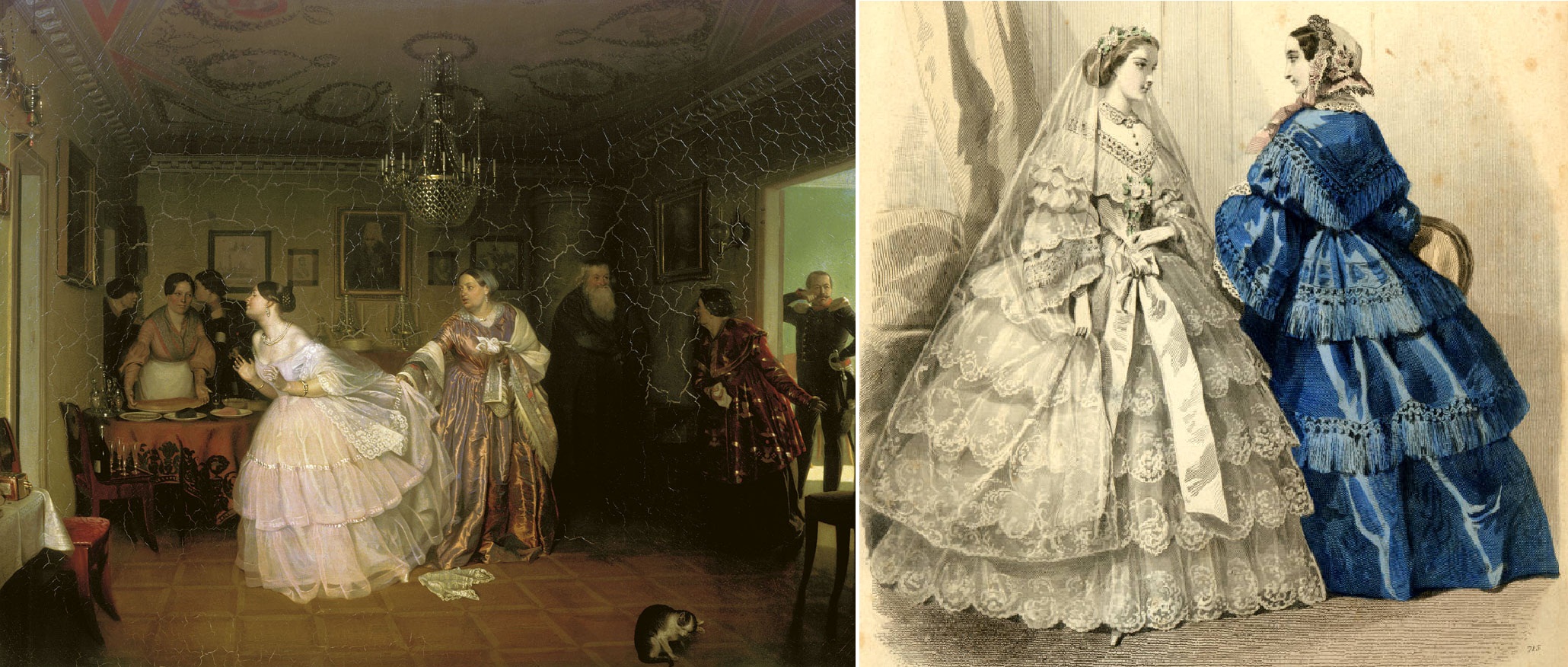 Что бы мы ни рассматривали — французскую моду XVII века или славянский костюм с традиционной вышивкой — везде есть выделение юных девушек на выданье и женщин первого года замужества. И во Франции, и на Руси женщина, которая недавно вышла замуж, носила самые шикарные наряды, и этот гендерный стереотип силен во все времена. Даму, которая хочет выглядеть значительно моложе своего возраста, всегда было принято высмеивать, пожилого щеголя же, наоборот, не осуждали.