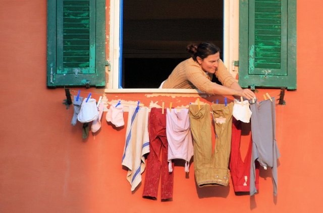 …и сразу в памяти всплывает образ полноватой матроны, услужливо предложенный итальянским кинематографом 60-х годов прошлого века, — многодетной матери, крикливой домохозяйки и отменной кулинарши. Выжил ли в современной Италии этот киношный образ – мы и узнаем сегодня. Согласно данным прошлогоднего (2013) исследования Организации экономического сотрудничества и развития (ОЭСР), еженедельно итальянки занимаются неоплачиваемым трудом по дому на 21 час больше (36 ч.) своих соотечественников-мужчин (14 ч.). Из этого исследователи делают вполне закономерный вывод, что у итальянских женщин гораздо меньше возможностей преуспеть на работе и сделать карьеру, чем у мужчин. Для сравнения: в Индии аналогичный показатель равняется 18 часам в неделю; 15 часам в Испании; 14 часам в Новой Зеландии, Турции, Канаде; 12,5 часам во Франции и всего лишь 3 часам в прогрессивной Дании. Значит ли это, что каждый итальянский дом сверкает чистотой, каждодневно радует домашней пастой и выпечкой, пестрит ухоженными растениями в горшочках и там играют милые опрятные детишки? А вот и нет! Как справедливо заметила моя итальянская коллега, здесь после рождения детей все дома делятся исключительно на две категории: в одних царит идеальный порядок, в других – полный хаос, а третьего, к сожалению, не дано. И забота обо всем этом лежит практически безраздельно (вот и статистика нам это тоже подтверждает) на хрупких плечах простой Итальянской Женщины. Вы мне, конечно же, скажете, что проблема не нова, и что у нас на Родине, в России-матушке, баба испокон веков безраздельно везла на себе воз домашнего хозяйства. Спору нет! А давайте я расскажу вам о том, как справляются современные итальянки? Ведь лишь совсем недавно в Италии, особенно на индустриальном севере страны, отошли от расхожего стереотипа, что призвание женщины — рожать детей и заниматься домом, в то время как карьера и успех – это удел мужчины. Начнем с уборки. Практически во всех знакомых итальянских семьях есть приходящая помощница по хозяйству. Не чураются сторонней помощи и неженатые итальянцы. Среди уборщиц лидируют выходцы из Филиппин и Латинской Америки. Некоторые состоятельные семьи могут позволить себе и горничную с проживанием. Например, мои соседи даже прикупили однокомнатную квартиру в том же доме, двумя этажами ниже, где живут их часто меняющиеся (видимо, сказывается стерзвозный нрав хозяйки) помощницы по хозяйству. «Я вам не скажу за всю Одессу», но в Милане два-три часа в неделю качественной уборки и помощи в глажке белья – уже давно не роскошь, а способ выкроить время вне работы на общение с семьей, чтобы не тратить на стирку и глажку драгоценные выходные. Кстати, о глажке: бизнес прачечных, откуда можно забрать отутюженные мужские сорочки по вполне приемлемой цене около 3 евро за штуку, в деловой итальянской столице уже давно процветает. Даже моя неработающая соседка-марокканка облюбовала химчистку в двух шагах от дома: каждую пятницу я вижу ее с аккуратными запечатанными пакетами мужниных щегольских рубашек. Если итальянке надо что-то заштопать, подшить или посадить по фигуре, то она почти наверняка отправится к расположенной в том же квартале китайской портнихе – ну и что, если там тесно и скверно пахнет, зато цена не кусается, ведь итальянки — рачительные хозяйки. Бережливость (если не сказать ск