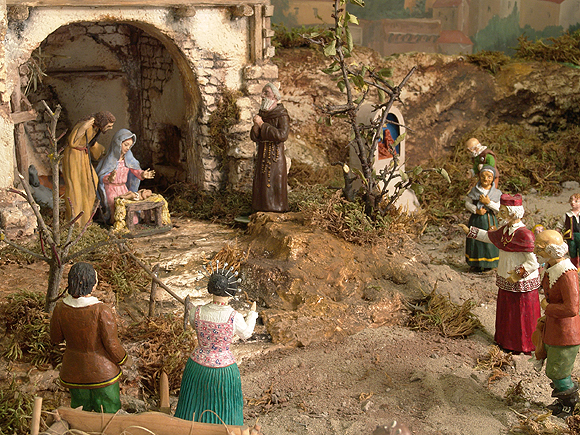В Италии символом рождественских праздников является вовсе не ель, а стилизованный домашний вертеп с непременными фигурками Девы Марии, младенца Иисуса, Святого Иосифа, трех волхвов, ангелов и животных. Эти фигурки любовно собирают годами и нередко передают в одной семье из поколения в поколение. После рождественского вертепа новогодняя ель и живописные хвойные венки – непременные атрибуты украшения любого итальянского дома. Самый традиционный «сюжет» рождественского вертепа по-итальянски – это поклонение пастухов (или волхвов, или же и тех, и других) младенцу Иисусу, но иногда итальянцы выбирают и иные эпизоды Евангельской истории, например, бегство в Египет или избиение младенцев. К празднику каждая церковь, каждый дом в Италии украшены подготовленной с любовью многофигурной композицией самого разного масштаба – от скульптур в полный рост, которыми восхищаются в церквях прихожане, до изящных миниатюр, которые можно уютно примостить на комоде. По мнению историков, традиции делать вертеп мы обязаны Св. Франциску. И вот, в 1223 году в городке Греччио, что в центральной итальянской обрасти Умбрия, праздничное рождественское богослужения украсила сценка живого вертепа, который позже вопроизвел Джотто на одной из фресок Верхней Базилики святого в Ассизи. А первый вертеп со ставшими с тех пор традиционными персонажами относится к 1283 году и принадлежит Арнольфо ди Камбио, догадавшемуся вырезать из дерева восемь статуэток, которыми можно полюбоваться и сегодня в римской церкви Санта-Мария Маджоре. С 1400-х годов полюбившиеся итальянцам фигурки изготавливали из дерева или из глины (сейчас используют также керамику, фарфор, папье-маше и прочие современные материалы), и особенно преуспели в этом мастера из Тосканы. Однако, вскоре в искусности и фантазии их опередили южане из Неаполя, что и держат пальму первенства по стране до сих пор. Наряду с неаполитанцами самыми большими мастерами по изготовлению фигурок для рождественского вертепа по праву считаются ремесленники из Сицилии. Подумать только, ведь совсем недавно, еще в 60-70-х годах прошлого века, их талант оказался вдруг не востребован – Италию захлестнула мода на новогодние ели, и жители Апеннин на время забыли о своей красочной традиции празднования Рождества Христова. К счастью, подобная забывчивость продлилась недолго, и сейчас итальянцы снова украшают дома старинными фигурками, с увлечением расписывают «задник» вертепа красками, водят детей в местный приход, чтобы поклониться младенцу Иисусу или даже участвуют в розыгрыше живых сценок Евангельской истории. В Милане, который уже стал мне родным, принято собирать вертеп и ставить новогоднюю ель 7 декабря, в праздник покровителя города Св. Амвросия. Живописный вертеп со старинными фигурками – предмет особой гордости любой итальянской семьи. Так, в столичном Риме особо знатные и состоятельные семьи даже соревновались меж собой — чей вертеп богаче и солидней: приглашенные артисты воспроизводили сюжеты Евангелия из фигур в полный рост, отстраивая настоящий хлев и сооружая самые что ни на есть правдоподобные ясли. Такие вертепы, как правило, располагались в сельской местности за пределами Рима и были доступны для посещения – и восхищения! – туристам и простым горожанам. Самые известные и примечательные из таких верте