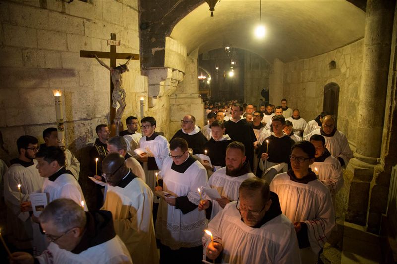 Иерусалим — удивительный город сам по себе, а во время больших христианских праздников атмосфера в нем становится по-настоящему необыкновенной. События католической Страстной недели и Пасхи, которую католики и протестанты всего мира отметили вчера, 27 марта, стали для меня потрясающим переживанием, и я хочу поделиться своими впечатлениями с читательницами Матроны.Ру. Начну с праздника Входа Господня в Иерусалим, также известного, как Вербное воскресенье. Тут оно, конечно, не Вербное, а Пальмовое. Ежегодно процессия, в которой участвуют местные католические общины и паломники, начинается в Виффагии: И когда приблизились к Иерусалиму и пришли в Виффагию к горе Елеонской (Мф 21:1). Сегодня это часть Восточного Иерусалима (то есть население исключительно арабское). Уже за несколько сотен метров до францисканской церкви улица наполнена людьми с пальмовыми и оливковыми ветвями и, конечно, журналистами. Двор церкви переполнен — говорят, что за один день ее посещает больше человек, чем в течение всего года. В два часа дня процессия верующих наконец выдвигается, чтобы повторить путь Иисуса в Иерусалим (повторить довольно приблизительно, так как, естественно, со времен Христа город перестраивался и менял свой облик). Торжественное шествие вниз по Елеонской горе сопровождается музыкой и песнями — в этот день следует пребывать в радости, ведь праздник Входа в Иерусалим напоминает нам о предстоящем входе в Царствие Небесное. Сам путь не очень длинный, но процессия, растянувшаяся на километр, движется медленно, с остановками. Поэтому дорога до Старого города занимает больше двух часов, на протяжении которых не переставая поют осанну и гимны. Это может быть утомительно физически, но ощущение счастья и религиозного восторга придает сил. Чувствуешь, что и сейчас, среди идущих, незримо присутствует Христос. Колонна входит через Львиные ворота и останавливается во дворе базилики Св. Анны. На балконе рядом с ней стоят люди, они приветствуют входящих и бросают белый рис. Также в этот день Новые ворота и территорию вокруг них украшают пальмовыми ветвями (эти ворота — основной вход в христианскую часть Старого города). В течение Страстной недели ежедневно во всех церквях Иерусалима проходят торжественные службы. И не только в церквях — также по Крестному пути (Via Dolorosa) проходят процессии. Небольшое отступление: в этом году на время Страстной недели пришелся еврейский праздник Пурим — самый веселый праздник в иудаизме, посвященный событиям Книги Эсфири. Со вторника по пятницу Иерусалим превратился в один сплошной карнавал: люди в маскарадных костюмах, шум, веселье. На контрасте с атмосферой ожидания Пасхи, наполнившей христианскую часть Старого города, это все имело какой-то сюрреалистичный оттенок. Самое сильное впечатление производит Похоронная процессия в храме Гроба Господня в Страстную пятницу. Она начинается в католической части храма, слева от Гроба. Торжественно входят монахи-францисканцы во главе с кустодом Святой земли (это главный настоятель ордена). Перед монахами идут два араба в парадных одеждах — в синих мундирах, расшитых золотом, красных фесках и с богато украшенными саблями на поясе. Они держат тяжелые деревянные палки с металлическими навершиями: этими палками они стучат об пол, возвещая приближение процессии. Это так наз