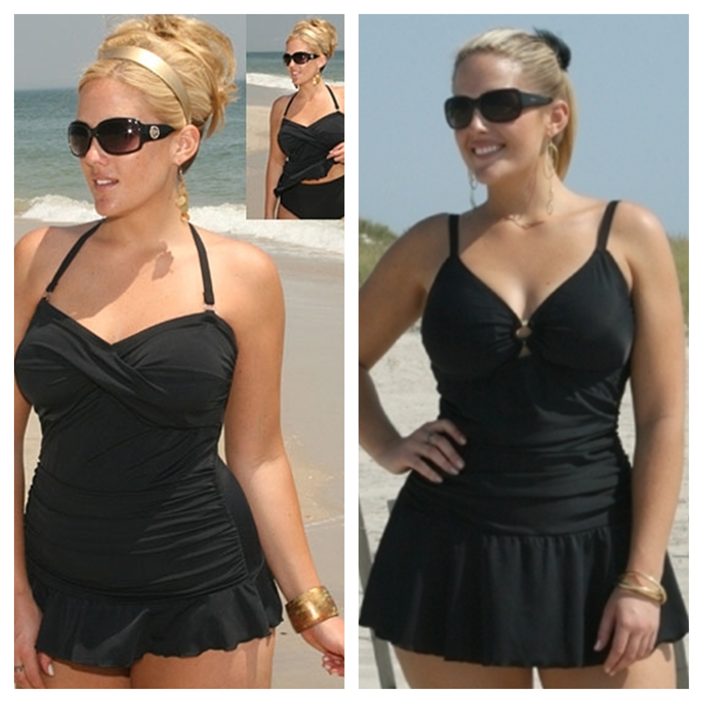 Самое время сегодня поговорить о купальном сезоне в преддверии летних отпусков. Многие из нас, с наступлением долгожданного тепла, начинают переживать о том, что фигура недостаточно подготовлена к встрече с солнцем и водой. Хорошо, когда есть время на фитнес и зарядку, но у современного человека не всегда остается на это время из-за быстрого ритма жизни, а отпуск уже через неделю. Хочу рассказать, как можно с помощью правильно подобранных купальников и аксессуаров визуально скорректировать возможные недостатки фигуры. Маскируем широкие бёдра Одним из главных женских переживаний являются полные бёдра. Обычно по этому поводу особенно комплексуют девушки с типом фигуры «груша». Несмотря на хрупкий верх, красивые руки и линию плеч, низ у фигуры типа «груша» тяжеловат даже при сильной худобе. Если правильно подобранные платья/юбки/брюки могут отвлечь внимание от широких бёдер, то как быть с купальниками, где всё открыто по максимуму? Выход есть! Несколько приёмов визуальной коррекции полных бёдер: — Купальник с прямой или чуть расклешённой юбочкой – как ни странно, такая модель зрительно стройнит и делает фигуру более гармоничной даже несмотря на то, что с первого взгляда может показаться, будто юбка придаёт нижней части больший объём. Но юбочка на самом деле может и целлюлит скрыть, и закрыть неприглядные широкие места, к которым внимания всегда больше, если они оголены. К тому же, такой купальник выглядит очень женственно, в отличие от полностью открытых купальников с трусиками бикини. Юбочка может быть слитная с трусиками, или же отдельным элементом, который подбирается к трусам от купальника. Также возможен вариант, когда слитный верх от купальника внизу дополнен оборками, которые создают зрительную иллюзию юбочки. — Купальник с ярким верхом и нейтральным низом – как известно, чтобы отвлечь внимание от проблемной зоны, нужно сделать акцент на привлекательной части тела. Если у вас тяжелый низ, но хрупкий красивый верх, длинная шея, изящные плечи и руки, то обратите внимание на свои достоинства с помощью более яркого верха с броским рисунком, интересными деталями, оборками или рюшами. Низ при этом лучше всего сохранить однотонным, гладким, классическим и неброским, тёмного или нейтрального цвета. — Чтобы скрыть широкие бёдра, воспользуйтесь женственным парео. И красиво, и практично, и очень модно. В парео удобно прогуливаться по берегу моря, сидеть у бара или просто дремать на пляже, особенно если вы не очень любите загорать. Парео можно подобрать под цвет купальника, или даже точно такой же расцветки, как купальник. Таким образом, получится единый купальный ансамбль. Только лучше всего повязывать парео под углом на талии, а не горизонтально. Именно таким образом можно зрительно скрыть широкие бёдра. Скрываем животик и уменьшаем талию Немало печальных моментов доставляет женщинам и жировые отложения в области живота и талии. Однако и эту проблему можно решить с помощью правильно подобранного купальника. — Купальник танкини – это палочка-выручалочка для всех, кто не очень доволен отложениями в области живота и талии. Этот купальник выполняет корректирующие функции, и особенно выручает пышных женщин. Танкини состоит из длинного плотного топа (верх) на бретельках и плавок. Достаточно закрытый купальник, он похож на коротк