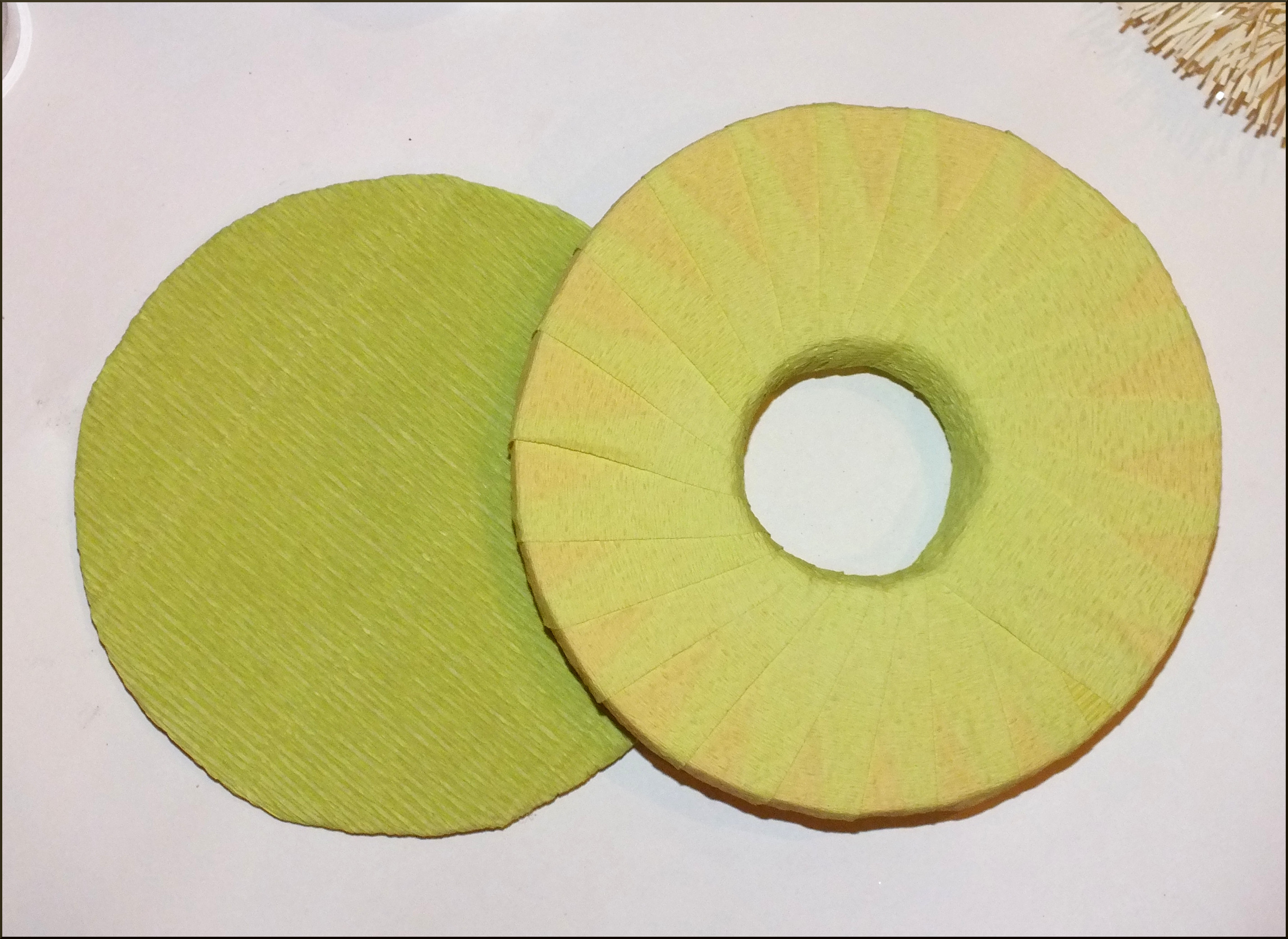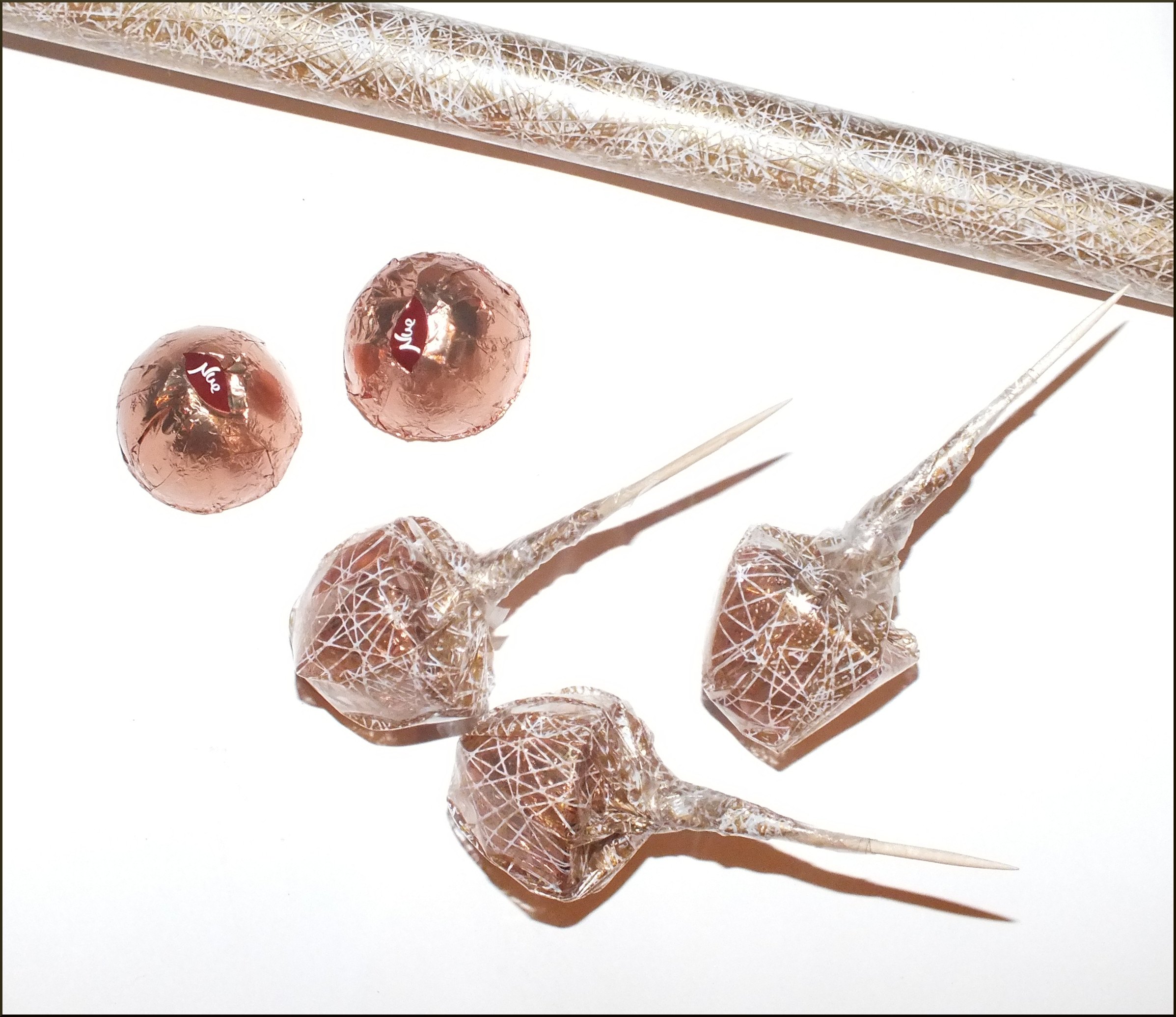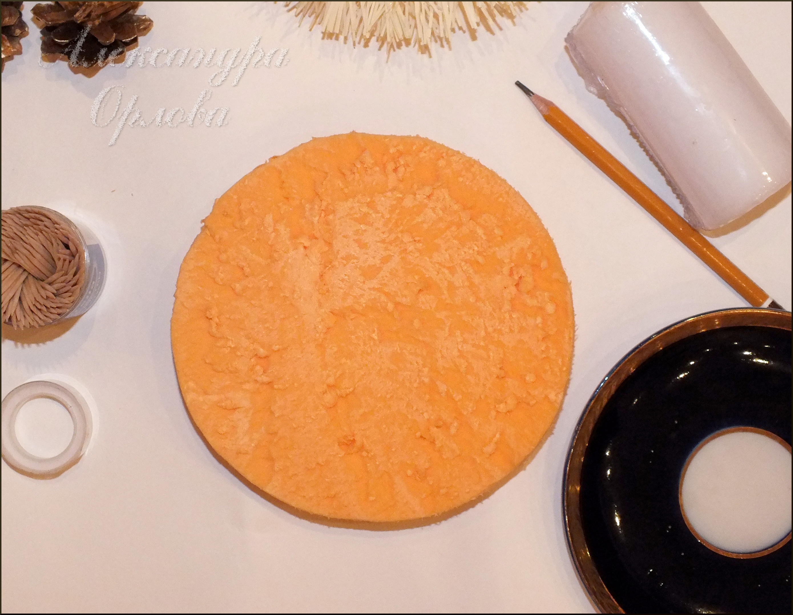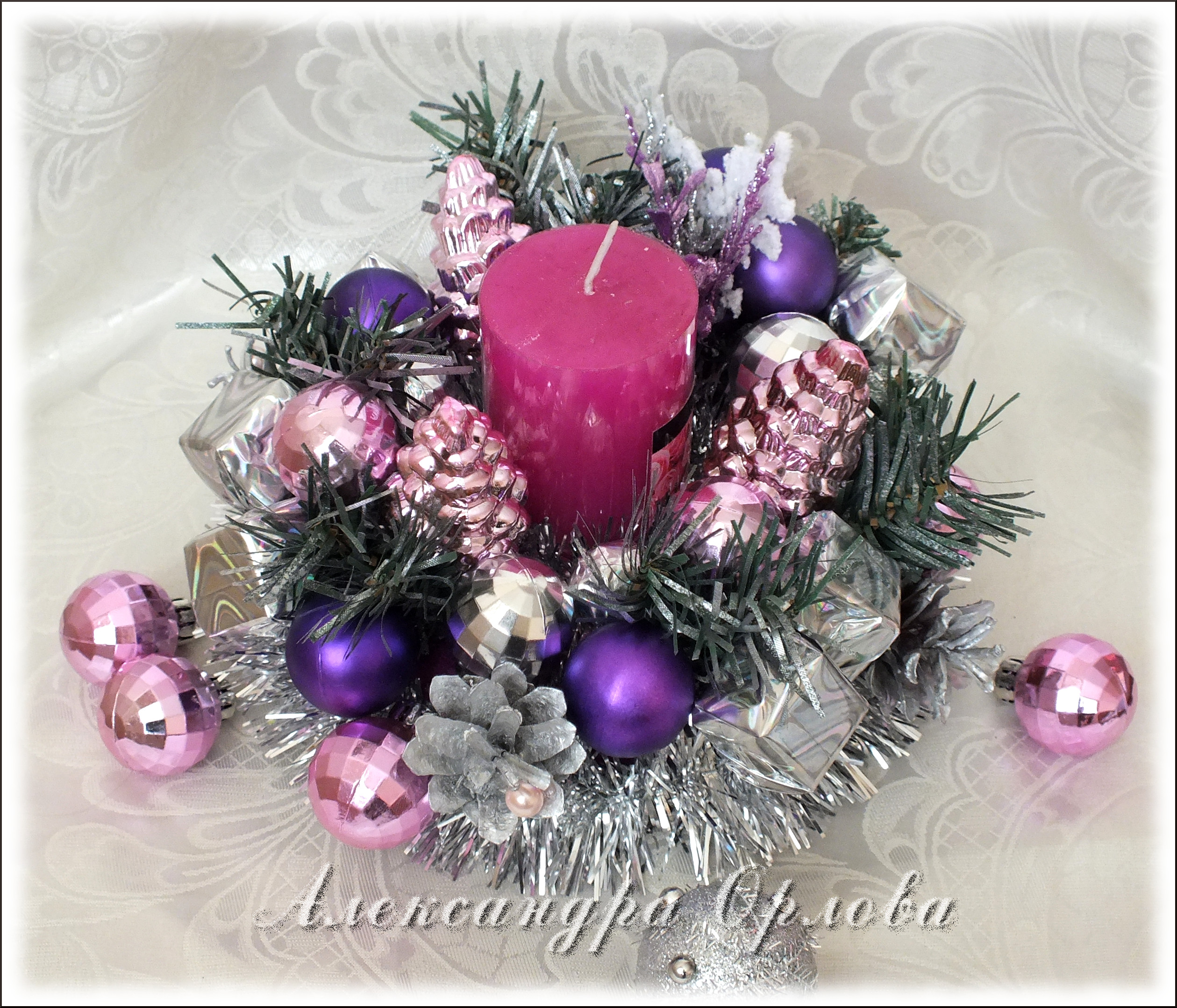 Приближаются зимние праздники. Посмотрите на календарь: ещё две среды, и вот уже Новый Год! Для тех, кто хочет создать необычную уютную атмосферу в доме, погрузиться в предпраздничные хлопоты и «натворить» чего-нибудь этакое, я расскажу, как своими руками сделать оригинальную композицию, которая послужит отличным подарком для сладкоежек или украсит ваш праздничный стол. Вы можете сделать эту нарядную поделку уже сегодня или запланировать вечер творчества с детьми на длинных выходных. Выбор за вами! Вам понадобятся: -пенополистирол/пенопласт; -свеча; -карандаш/ручка; -картон; -острый нож; -гофрированная флористическая бумага/бумага для детского творчества; -конфеты (несколько штук); -зубочистки/шпажки; -прозрачная пленка; -горячий клеевой пистолет/клей; — скотч; -мишура; -декоративный материал (шарики,елочные украшения,шишки,ленты,бусины и т.д.); — и пара часов времени. На кусок пенопласта (я использую пенополистирол, т.к. пенопласт сильно крошится, но зато значительно лучше режется!) положить небольшое блюдечко, обвести карандашом, и вырезать острым ножом. В середину полученного колечка примериваем свечу, обводим, также вырезаем: получается нечто вроде «бублика». Далее из плотного картона вырезаем круг, соответствующий по диаметру нашему будущему подсвечнику и оборачиваем его гофрированной флористической бумагой (вырезаем круг с припусками, как это показано на рисунке, припуски приклеиваем). Для этих целей можно использовать бумагу для детского творчества, продающуюся в рулонах в канцелярских магазинах. Для удобства я использую клеевой пистолет, мгновенно фиксирующий все материалы и детали, но можно использовать и другой клей, например «Момент кристалл», главное — проявить аккуратность при склеивании. Из гофрированной бумаги вырезаем полоску 3-4 см.шириной и также оборачиваем ею «бублик». Склеиваем детали. Серединку и края обклеиваем мишурой. Форма для подсвечника готова! Вставляем свечу. Вырезаем из прозрачной пленки квадраты, берем шоколадные конфеты (лучше всего в подсвечниках смотрятся кругленькие шарообразные или куполообразные конфетки, в ярких — золотых,красных,зеленых,синих обертках), оборачиваем пленкой и приклеиваем к зубочистке, используя узкий скотч. Вот что получается в итоге. Изготавливаем таким образом необходимое количество конфеток (от 6-ти до 10 обычно бывает достаточно). Втыкаем зубочистки с конфетками в подсвечник. Примерно так: Далее на клей крепим зубочистки/шпажки к декоративным элементам: новогодним шарикам, лентам, шишкам и т.д., для того чтоб воткнуть их в подсвечник. Здесь наступает самый увлекательный украшательства: можно дать полную волю фантазии:). Наш подарок готов! Теперь его можно упаковать, завязать роскошный бант и преподносить счастливому обладателю! Варианты оформления подсвечников: Счастливого Нового Года и веселого Рождества!