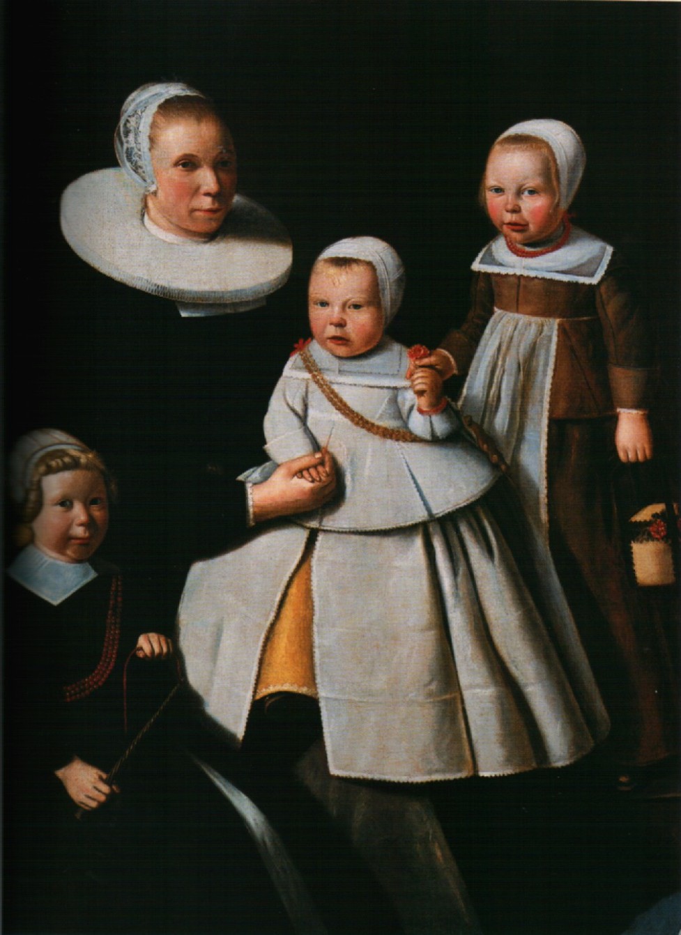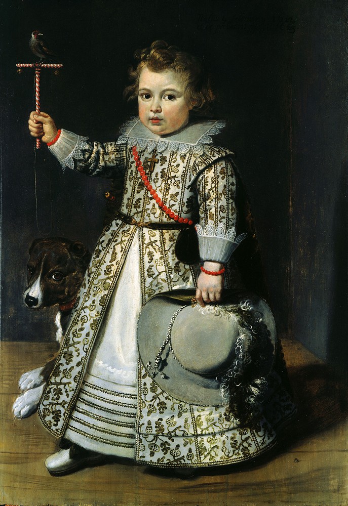 Рядить во всё это совсем уж маленьких детей, когда они вырастали из пелёнок, было бы сложно, и тогда взрослые нашли выход. Они продлили период младенчества, и мальчики с девочками где-то до трёх-четырёх лет (а иногда только до двух) стали носить такие же одёжки, как и те, в которые их одевали, когда они ещё не умели ходить — длинные платьица, во многом напоминавшие сорочки. Правда, совсем отказаться от взрослых деталей при этом не могли, зато дополняли передничками и чепчиками (кстати, очень похожими на те, что мы и ныне надеваем на малышей). Это, можно сказать, была первая в истории детская одежда.