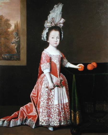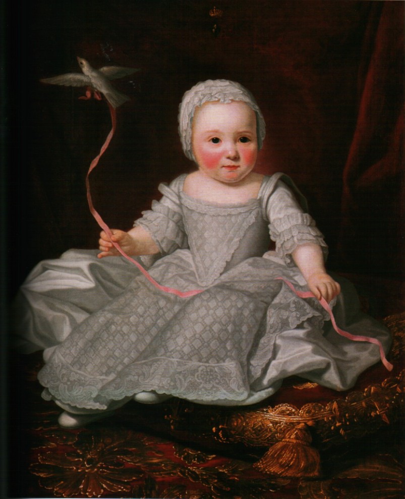 Возможно, ребенок просто набелен и нарумянен, также, как современники-взрослые. Хотя не уверена.