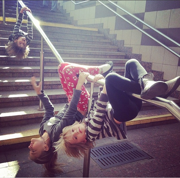 10:30 — три раза в неделю мы ездим с младшими на занятия в цирковую студию. Добираемся пешком до метро, там одна пересадка, еще немножко пешком — час времени, и мы на месте! Пока детки занимаются, у меня есть полтора часа для работы! На самом деле совмещать работу и материнство, спорт и материнство и так далее — просто. Я беру ноутбук и забиваюсь в какой-нибудь тихий солнечный угол детского дома творчества и пишу, зная, что меня никто не потревожит.