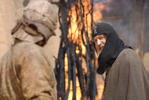 «Орда» (Россия, 2012, режиссёр – Андрей Прошкин, в ролях – Максим Суханов, Роза Хайруллина, Андрей Панин, Иннокентий Дакаяров) На экраны страны вышел новый фильм Андрея Прошкина (сына создателя «Холодного лета 53-го») с лаконичным названием «Орда». Сценарий написал известный сценарист Юрий Арабов, взяв за основу реальные события XIV века. Дремучее средневековье. В столице татаро-монгольской орды Сарай-Берке борьба за власть развивается не менее жгуче, чем в европейских метрополиях. В ходе государственного переворота задушен хан Тинибек (Андрей Панин). Преемник и убийца – брат погибшего, Джанибек (Иннокентий Дакаяров). Его мать — ханша Тайдула (Роза Хайруллина – приз за лучшую женскую роль на недавнем Московском кинофестивале) живет странной отрешенной жизнью, ее внутренний мир скрыт за каменным лицом шекспировской героини. Тайдула благословляет преступного сына на царство и вскоре оказывается сражена тяжелым недугом — слепотой. Любящий сын Джанибек отдает приказ доставить в Орду колдунов и шаманов из разных земель, но их магия оказывается бессильна. Тогда, под угрозой сжечь Московское княжество, хан призывает в ставку митрополита Алексия (Максим Суханов), друга и наставника преподобного Сергия Радонежского. Тот отправляется в путь с неуверенностью в душе и упованием на высшие силы. Ордынцы воспринимают священнослужителя как очередного шамана, но попытки исцелить ханшу оканчиваются полным фиаско. Алексий, чувствуя свою вину, сознательно подвергает себя тяжелым испытаниям. Изначально фильм носил название «Святитель Алексий». Но видимо, посчитав это название некоммерческим, создатели картины переименовали ее в «Орду». Шаг более чем верный. С первых кадров зритель погружается в сложный мир азиатского хаоса, показанный со скрупулезными подробностями и нюансами. Для отечественного кино – случай редкий. Прежде столь тщательно выстроенные исторические конструкции можно было увидеть только в китайских и корейских блокбастерах. Бюджет в 12 миллионов на сей раз не был выброшен на ветер. Редкий случай в нашем кинематографе, когда ставка сделана не на коммерческий эффект, а на художественное мастерство. Поначалу «Орда» поражает видеорядом, этнографической достоверностью, реализмом драматургии, а также вниманием к деталям, что нечасто встречается в российском кино. Затем, по ходу развития действия, зритель начинает обращать внимание на сюжет. И здесь у православного человека возникают вопросы. Оказывается, в центре интриги лежит не вера в возможность совершения чуда, а совершенно другие – магические – реалии. Тем более что Прошкин с Арабовым не преминули заявить, что сделали современную картину о «хождении интеллигента во власть». Причем же тогда святитель Алексий, реальное историческое лицо? В столь сложное для Церкви время стоит только чуточку сместить акценты, и восприятие будет совершенно иным. В образе митрополита Алексия в исполнении Максима Суханова сложно разглядеть не только православного святого, но и вообще служителя веры. Настолько его поступки расходятся с христианским пониманием миропорядка. Светский и граждански активный человек теоретически имеет право выражать свое отношение к вопросам веры как угодно. Главное обойтись без радикализма, иначе громкие судебные процессы станут для обитателей России обыд
