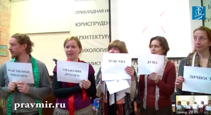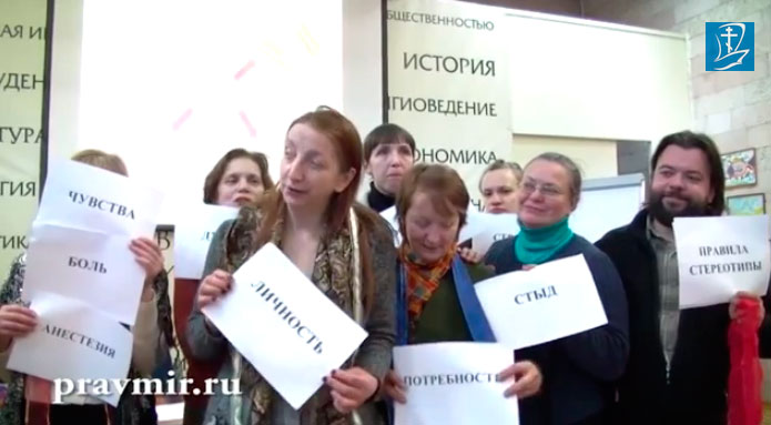 Уважаемые читательницы, мы с удовольствием представляем вам доклад психолога Ольги Михайловны Красниковой, проректора Института христианской психологии, состоявшийся в Российском Православном Университете в рамках Международных образовательных Рождественских чтений. Доклад называется «Влияние детских психологических норм на развитие личности». Здравствуйте, уважаемые коллеги и спасибо за возможность выступить здесь. Процитирую часто встречающиеся запросы, обращения, с которыми приходят к нам в консультацию люди: — Я эмоционально отсутствую в своей жизни; — У меня нет никакого интереса, я уже давно потерял смысл жизни; — Мне очень тяжело что-то начинать, продолжать, заканчивать; — Меня гложут постоянные страхи – кто что скажет; — Бывают приступы паники, раздражения, агрессии; — Я всё время себя заставляю, я всё время с чем-то в себе борюсь; — Я уже очень устал контролировать свою жизнь, я совсем не отдыхаю; — Не желаю никого видеть; — Я вообще хочу уехать далеко и надолго; — Я во всём виновата, жизнь не удалась, всё плохо; — Не знаю, что делать; — Вообще не хочу жить — безысходность, тоска, – ну и так далее. Можно долго приводить примеры тех состояний, с которыми люди обращаются за психологической помощью. Причем в нашу консультацию обращаются как верующие, так и неверующие, как православные, так и мусульмане. То есть человек может испытывать эти тяжелые состояния как внутри конфессии, так и совершенно вне конфессии. Мне интересно и любопытно, что происходит с душой человека и с определенными его потребностями, чувствами, особенностями, способностями и талантами (как правило, в детстве происходит), что, вырастая, он оказывается в таком тяжелом внутреннем психологическом состоянии. У нас тут, видите, целый реквизит. Это границы личности. И внутри будет личностное пространство. У нас будет человек, который будет из себя изображать личность. Кто сегодня будет личностью? Скорей-скорей-скорей! (вручает реквизит) И ещё у нас будет человек, который будет живой душой. Живая душа, держите. Ещё у нас будут чувства. Ещё у нас будут потребности. И ещё, так как у нас личность очень уникальная, у нее будут особенности. И вот смотрите, родился ребенок. Мы сначала рассмотрим норму. В норме мы его ждали. Её… Её хотели, да? И мы были готовы стать ей родителями и помощниками. То есть мы её хотели не для себя, правильно? Чтобы она нам сразу чего-то должна была – сделать нас счастливыми, придать смысл нашей жизни. А мы были готовы именно помочь новому человеку, новой личности расцвести в этом мире. И вот она у нас родилась, мы знаем, что у нее есть живая душа, мы обращаем внимание на её чувства, мы удовлетворяем её потребности, мы ее изучаем, мы с ней знакомимся, и мы учитываем её особенности. И в этом нам помогают уважение к личности, уважение к другому, и ещё нам помогают нравственные ориентиры – это тоже очень важно. Только они у нас ещё пока не внутри, а снаружи — эти нравственные ориентиры. И пользуясь этими помощниками, родители помогают ребенку научиться правильно обращаться со своими чувствами, чтобы, выражая свои чувства, ребенок не нарушал это уважение другого. То есть если тебе больно и плохо, это не значит, что надо кричать, оскорблять и кусаться. Чтобы, удовлетворяя свои потребности, ребенок учитывал, что если он хочет чего-то, это не значит, что это 
