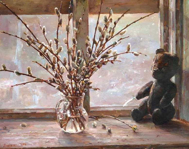 Вербное — Мама, а де люна? — Она спряталась, Котя, за тучками. Котя задумчиво бродит по церковному двору, глядя на небо. Луны нет, а была же! Куда делась? Котю осеняет: — Я пояла мама! Юна пошла пать! С трудом подавив смешок, соглашаюсь: — Да, Котик, она пошла спать. — Мама, ты смеёсся? — строго спрашивает Котя, заподозрив неладное. — Нет, я серьезно. Пошли пока купим вербы у тети Гали. Мы отправились в церковный зал, где долго и придирчиво выбирали подходящий букетик. Мне и продавщице понравился больше розовый, но Котя настояла на белом. Победил, конечно, он. Вообще-то в Евангелии указывается что на Вход Господень в Иерусалим люди постилали Христу путь пальмовыми ветвями, тем более что в Австралии этого добра пруд пруди. Ан нет. Вербное так вербное. Ее собирают в сентябре, местной весной, потом хранят в морозилке и перед праздником весь приход несколько часов вручную открывает белые пушистые барашки. Традиция же! Русская. Чтоб непременно с вербочками. В храме много людей, душно и пахнет травами из букетов с вербой. Сережа капризничает. Шутка ли, человеку сразу четыре клыка выращивать, будто он не какой-нибудь там годовалый мальчик приятной наружности, а цельный крокодил! У кого угодно настроение испортится. Мы снова выходим на улицу. — Котя, слезь с забора! — Мама! — Что? — Я тебя юблю! — Я тебя тоже люблю, Котя, но с забора слезь. С печальным вздохом она покидает оградку и начинает нарезать круги по двору. Сережа с завистью смотрит на нее из коляски, он бы тоже не против, но я забыла взять ему обувь, да и потом, гоняться в темноте за обоими удовольствие ниже среднего. Котя между тем пробежала с десяток кругов, мы зашли в храм, освятили вербу, получили хлеба и отправились домой. — Мама! — Мммм? — А у тебя есть еще хебушки? — Нет, ты все скушала. — Мама! — Что? — А где наша папа? — В церкви. — Посли к нему, он ням есё даст хебушков! — Не могу Котик, у Сережи зубки болят и он плачет. Катя бежит к коляске, отдает ему свой букетик, который она берегла целый час и говорит: — На Сиёзя, не пачь! Сережа от удивления перестал выть и радостно залопотал что-то на своем инопланетном языке. Наверное, уточнял можно ли это есть. Лапутины Игорь и Ольга, «Верба» *** Страстная Начало Страстной недели выдалось дождливым и унылым, Коте скучно и она ищет, куда себя приткнуть. Сережа уже нашел, он залез в тележку с игрушками и философски созерцает собственные маленькие круглые ножки на фоне стены. Это зрелище его увлекает уже добрых десять минут, чего Котя вынести не может и, схватив тележку за ручку, начинает катать его по комнате. Сережа не против, он считает, что его ножки смотрятся неплохо на любом фоне. Наконец это занятие им обоим надоело, и все вернулись на исходные позиции. Скучно. Я варю борщ и решаю помочь, тем более что у Коти в последнее время проблема с цветами, она так долго не разговаривала и потом так внезапно заговорила, что мы не успеваем наверстывать упущенное. — Котя, какого цвета твое платьечко? — Синего! — Ну что ты, оно же розовое! — и, желая закрепить результат, ищу похожие оттенки вокруг — А какого цвета мамин фартушек? Он такой же как твое платье! Котя немного задумалась …. — Синего! Так, понятно, идем дальше. Выбираю максимально знакомые однотонные предметы, чтобы вызвать четкие ассоциации. — А какого цвета наш диванчик? — Коичневый! — Котик, ну он же белый! — Мама