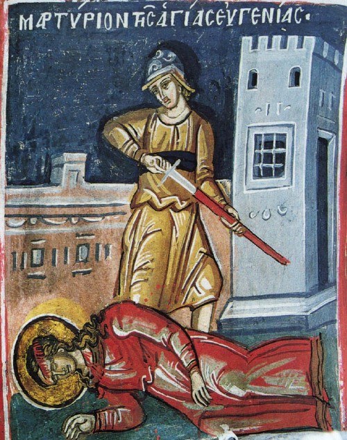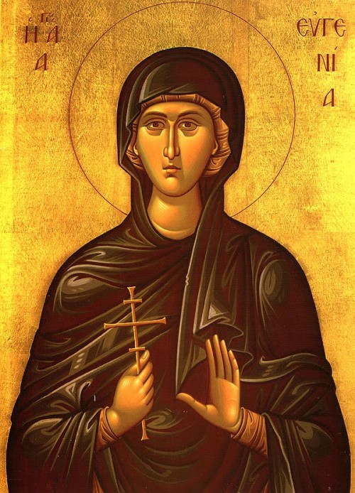 В житии святой преподобномученицы Евгении есть много расхожих шаблонов: красота и книжная ученость, попытка скрыться под видом инока в мужском монастыре, неверующий, но обращенный дочерью в христианство отец-правитель, клевета и наветы, оставленный жених и поверженные идолы. Однако здесь нет ничего лишнего, вся история жизни и жития святой течёт плавно и ровно, даже при самых невероятных совпадениях напоминая не индийское кино, а рассказ о вверении себя Богу, без воли Которого ни один волос не упадет с головы человека. *** В конце II века некий римский вельможа по имени Филипп получил от императора Коммода назначение на должность правителя Египта. Он взял свою жену Клавдию, своих сыновей Авита и Сергия и свою единственную дочь Евгению — и переехал вместе со всем семейством, чтобы править в Египте мудро и спокойно. Это означало, что Филипп, сам будучи скорее агностиком, чем приверженцем какой-то определенной веры, «управлял Египтом по римским законам и по обычаям предков», то есть уважительно относился ко всем существующим культам. Однако при этом правитель резко отрицал всевозможных волшебников и колдунов, вплоть до преследований по закону. Очень не любил Филипп евреев, причем на каком-то животном уровне, но не позволял этой личной неприязни выходить за рамки закона. «Милостивее всего, — говорит житие святой Евгении, — он относился к христианам и хотя изгнал их из самой Александрии, сообразно царскому повелению, однако позволил им мирно селиться и служить своему Богу в предместьях города. Филипп уважал христиан за чистоту их жизни и мудрость». В подобных условиях сам правитель и все его семейство исповедовали греческую философию, то есть, в первую очередь, занимали разум науками и любовью к мудрости. Однако уже приближалось то время, когда и Филипп, и Клавдия, и все их дети задумаются о душе и ее спасении. Все началось с того, что принято называть простой случайностью, но что очевидно было промыслом Божьим. Евгения, от природы обладавшая феноменальной фотографической памятью и страстной любовью к чтению, наткнулась на книгу посланий святого апостола Павла. Прочитав ее от корки до корки, девушка поняла, что ей открылась Истина. Она не могла поделиться новыми знаниями и своей радостью с родителями, потому что опасалась их гнева. Жениха у нее не было — многие знатные, богатые и красивые юноши сватались к Евгении, которая была не только умна, но и очень красива, однако девица отказывала всем, а Филипп и Клавдия не хотели принуждать дочь к браку без любви. Про подруг житие умалчивает — и лишь два человека, слуги-евнухи Прот и Иакинф, оказываются теми, с кем Евгения делится тем новым, что вошло в ее жизнь. Девушка просит у родителей разрешения отправиться в одно из загородных имений, намереваясь посетить там высланных в предместья Александрии христиан, чтобы узнать как можно больше о том учении, которое она уже приняла всей душой, но о котором знает еще так мало. Она берет с собой не только Прота и Иакинфа, но еще множество слуг, как и положено единственной дочери правителя. Торжественная кавалькада едет мимо одного из монастырей — и Евгения слышит иноческое пение слов из 35-го псалма: «Все языческие боги — демоны, а Господь сотворил небеса». Увидев в этом знак и Божье указание, Евгения призывает Прота и Иакинфа. Она рассказывает им свой пл