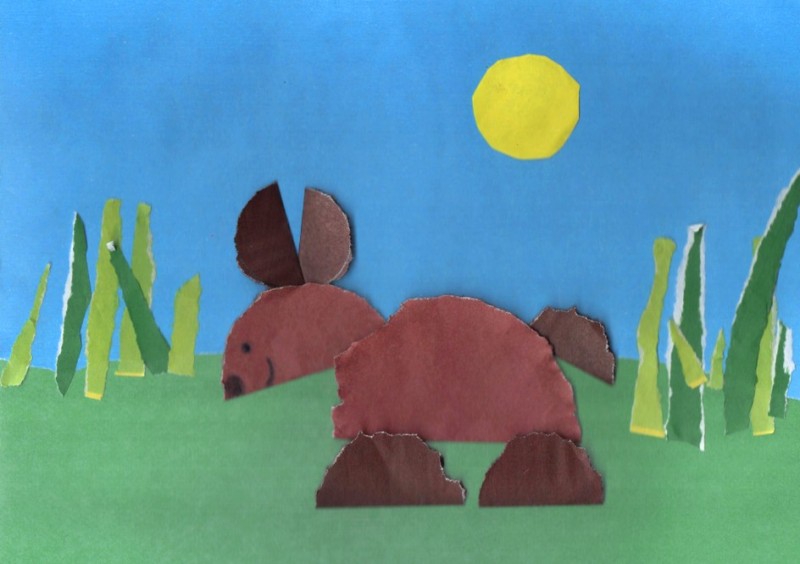 «Крошка сын к отцу пришёл, и спросила кроха: Что такое хорошо и что такое плохо?» – так начинается самое наивное педагогическое пособие, какое только можно себе представить. Сын доверчиво слушает, а папа складно рассказывает обо всём на свете. А уж окончание звучит и вовсе утопически. «Буду делать хорошо и не буду – плохо», – говорит малыш. Всё, это финал. Произведение Маяковского похоже на мечту взрослого человека об идеальном ребёнке. Благо она никогда не сбудется: никогда ни один ребёнок не последует всем родительским увещеваниям. Он, скорее, будет понемногу сворачивать с торной дороги, может быть, будет падать и вставать, а может, протопчет свой путь. И это прекрасно. А знаете, как загораются глаза у детей, когда они слышат, что не всегда нужно поступать по родительскому слову? Конечно, с этим утверждением нужно быть особо осторожным и растолковывать, что за внутренний голос может вступать в спор с волей родителя. Это голос совести, призывы познания, влечение таланта, словом, всё, что делает каждого из нас подобным Богу и требует от человека соответствовать своему творческому предназначению. И, думается, дети всё понимают верно и не используют этот тезис как своё право на шалости, но лишь как прибежище от патологий чрезмерно опекающей родительской любви и как возможность отстаивания своего личного пространства, которое взрослые часто нарушают. В одной малоизвестной якутской сказке о непослушном медвежонке мама-медведица никак не может взять в толк, как воспитать своего сына похожим на себя. Она ведёт его по берегу реки, показывая то вкусных жучков под содранной со старого пня корой, то пытаясь обучить его рыболовному делу. А сын постоянно отвлекается и попадает в истории: падает в воду, залезает на деревья, суёт мордашку в чужие норы. Он знакомится с оленем и сурком, жуёт мох и пытается подражать каждому встречному. Он совершает многое из того, что не входит в планы его бедной матери, и ей то и дело приходится отыскивать своего малыша в самых неожиданных местах. Лишь в конце истории медвежонок встречает своего сородича и решает «быть медведем». Какова же его радость, когда он узнаёт от матери, что по факту рождения он и так медведь! Давайте изобразим нашего любознательного медвежонка с помощью аппликации. Возьмём цветную бумагу, картон, клей-карандаш и чёрный фломастер. Для начала нужно оторвать часть синего листа по горизонтали и приклеить его в верхней части зелёного. Так получится фон – небо и поле. Затем потребуется сложить лист коричневой бумаги пополам вдоль и нарисовать на сгибе большой полукруг, полукруг поменьше, пару полукружий ещё меньшего размера и три совсем маленьких. Дальше можно вырезать, а можно осторожно оторвать вручную получившиеся фигуры. Затем начинаем собирать мишку. Самый большой круг, сложенный вдвое станет телом, круг поменьше – головой. Из двух сложенных пополам кружков получатся передние и задние лапы, а самые маленькие превратятся в уши и хвост. Обратите внимание, что клеем всегда намазывается только одна половинка круга, а вторая как бы раскрывается, что создаёт картине объём. Чёрным фломастером нарисуем теперь мордочку медвежонка. Можно дополнить картину мелкими элементами. У нас, например, показалось солнце, и выросла трава. Ну что, а ваш мишка вышел погулять? Сколько неудобств причиняют родит