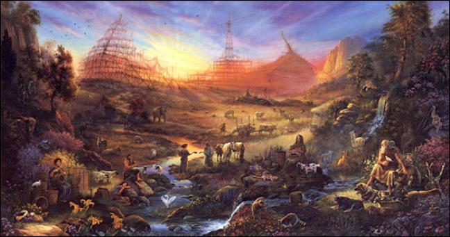 В последнее время мы рисовали сказочных персонажей и делали из сказочных сюжетов педагогические выводы, иногда неожиданные, иногда лежащие на поверхности. Но сейчас, когда наступил Великий пост, у меня появилось желание говорить о вещах более серьёзных, чем простые сказки. И вместе с тем возникло опасение, что читатель может поставить истории Священного Писания на один уровень с человеческим вымыслом, понизив таким образом значение и смысл богодухновенных словес. Поэтому считаю своим долгом предостеречь вас заранее от этой оплошности. Итак, всем известно, что судно для спасения от Всемирного потопа строил не профессионал, а любитель. Его и любителем-то назвать было нельзя, поскольку Ной (а речь сегодня пойдёт именно о нём) никогда раньше и не помышлял о масштабном кораблестроительстве. Но он не имел привычки спорить с Создателем, поэтому покорился и поверил необоснованной с человеческой точки зрения угрозе (ведь люди на тот момент ни разу не наблюдали дождь). Время в те дни шло размеренно, погоды стояли благоприятные, и роса каждое утро умывала богатые на урожай поля. Люди были общительны и, за неимением дистанционных способов коммуникации, быстро учились друг у друга и хорошему, и плохому. Но, как нам известно, дурные традиции куда более устойчивы, чем добрые помыслы. К сожалению, на земле, уже осквернённой к тому времени братоубийством, довольно скоро человеческие привычки стали невыносимыми для сердца, сохранившего в себе добродетели. Благо, у Ноя были надёжные тылы – его супруга и три женатых сына. Итого в его доме проживало восемь человек, считая самого Ноя. До потопа люди жили не в пример долго, поэтому строительство шло неспешно – более ста лет. И хоть Ной прямо отвечал на вопросы соседей, ничего не утаивая и не присоединяя к словам Господа, кривотолков ходило много. А уж сколько насмешек вытерпело благочестивое семейство! Не раз и не два умылись слезами женщины дома Ноя от едких людских комментариев и от страха перед будущим. Благо, хоть младенцев во время строительства у них не рождалось. Так вот, пока мужчины плотничали, женщины готовили провиант для внушительной «команды» плавучей обители. Ведь кроме людей на ковчег должны были взойти, вползти, влететь и запрыгнуть по паре каждой твари земной. А если говорить точнее, то нужно упомянуть, что так называемого чистого – пригодного для жертвоприношений – скота должно было прибыть по семи, мужеского пола и женского. Так повелел Господь. В назначенный час люди и звери расположились в чреве корабля. Семь дней ничего не происходило. Женщины вопросительно смотрели на мужей. Ной молился. Наконец воды потопа пришли на землю. Небеса потемнели, и в них будто открылись окна для дождевых потоков. Ной хотел было спасти кого-нибудь из соседей, но Бог затворил двери ковчега. Не тебе, человече, знать суды Божии. Дождь шёл сорок дней и сорок ночей, люди и животные засыпали и просыпались под звук шумящей стихии. Ещё сто пятьдесят дней вода прибывала, чтобы скрыть даже самые высокие горы. И лишь внутри ковчега теплилась жизнь: переговаривались люди, жевали свою жвачку животные, пели на все лады птицы. Шуршали ящерицы, стрекотали кузнечики. Жужжали мухи, разминая крылья. Корабль существовал как сложноорганизованная система, как великий биогеоценоз, как семя земли, ждущее благоприятного време