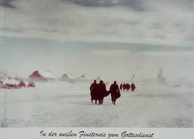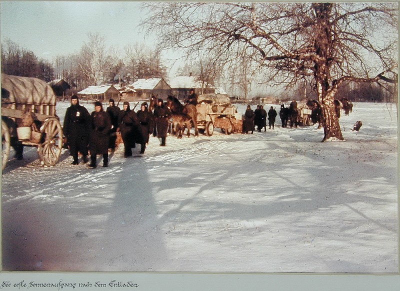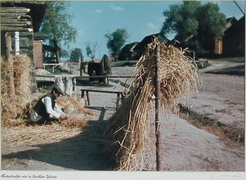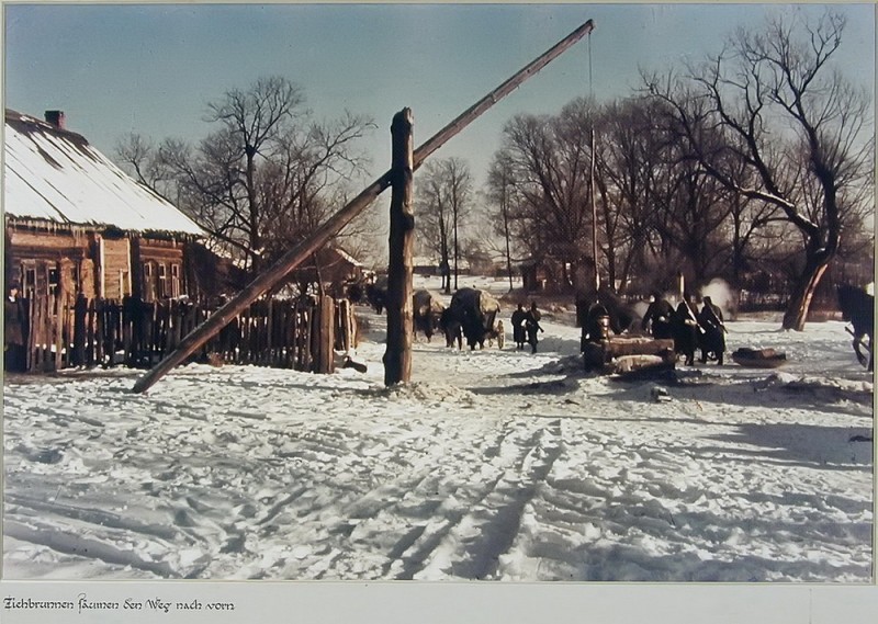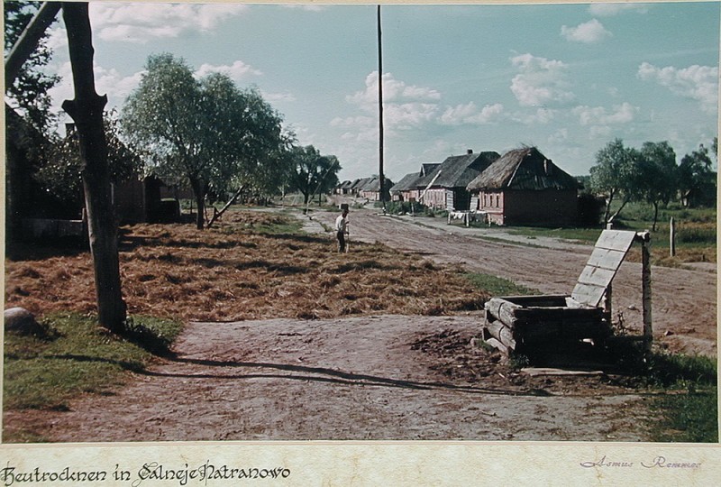 Источник: Postomania Немецкий фотограф Асимус Реммер, служивший во время Второй мировой в вермахте, сделал 1942-1943 гг. серию снимков в Калужской области. Советские крестьянки из деревни Акимовка. Зима 1943 года. Калужская область Асмус Реммер родился 18 октября 1909 года в Германии в городе Лангбалиг (округ Фленсбург) в семье художника Эдуарда Реммера и фотографа Берты Реммер. Закончил школу, учился фотографии в ателье своей матери и в г.Гамбург-Гарбург. В 1925 году унаследовал фотоателье своей матери в Лангбалиге. Работал фотографом, специализируясь в области портретной, жанровой и пейзажной фотографии. Был владельцем собственного ателье с фотолабораторией. В 1935 году начал издавать почтовые открытки. В 1937 году сдал экзамен на звание мастера фотографии. «Воробьева гора» («Worobjewa Gora»). Калужская область С 1940 по 1945 гг был солдатом вермахта. Служил в пехоте, в 1942-1943 гг участвовал в боевых действиях на территории СССР, затем во Франции. В мае 1945 года попал в американский лагерь для военнопленных, откуда вернулся осенью того же года. «Обмолот урожая как в стародавние времена». Калужская область В 1954 году Реммер открыл во Фленсбурге фотостудию, которую позже передал своему сыну. С 1969 по 1998 гг работал в своем ателье в Вестерланде, печатая фотографии из собственного архива и из архива своих родителей. Советские крестьянки стирают белье в реке. Весна 1943 года. Калужская область Асмус Реммер является одним из пионеров в области цветной фотографии. В то время у него были маленькая фотокамера «Фохтлендер», фотокамера «Плаубель-Макина» (6х9) и цветная фотопленка «Агфа» для съемки диапозитивов. Советские крестьянки на день Святой Троицы в деревне Патерки (Paterki). Калужская область В своем дневнике Асмус Реммер так описывает свою первую встречу с Россией: «Нас высадили на вокзале в Павлиново (Калужская область) в кировском лесу недалеко от Москвы. Мы сделали длинный ночной переход, прежде чем перед восходом солнца увидели первую русскую деревню. Засыпанные снегом дома возникли неожиданно. Из печных труб в розовое утреннее небо поднимался дым. Русская женщина набирала воду из колодца». «У меня возникло ощущение, словно я читаю Библию, и я воскликнул: «И здесь мы ведем войну?». В этот момент мне стало плохо и мои товарищи внесли меня в избу. Очнувшись, увидел стоявшую передо мной на коленях русскую девушку, которая поила меня с чайной ложечки горячим молоком с медом. Я сказал ей: «Я мог убить твоего мужа, а ты беспокоишься обо мне»». «Когда мы проходили через другие русские деревни, мне тем более стало ясно, что было бы правильно как можно быстрее заключить с русскими мир. На сделанных мной фотографиях видно, что русские не обращали внимания на мою военную форму и относились ко мне скорее по-дружески!» Деревенские дети. 1942 «В поисках интересных сюжетов я прошел гораздо больше, чем мои товарищи. Опередив нашу колонну, я сделал фотографию длинной вереницы конных повозок среди живописных деревьев. Она называется «Как в 1812 году». Мы прошли более 1000 км вглубь российской империи, и все это время меня не оставляла мысль, в каком же состоянии мы оставим эту страну, когда будем покидать ее…» Советский крестьянин сушит сено в деревне Дальнее Натраново (Dalneje Natranovo). Калужская область Представленные здесь фото были сделаны в немецком тылу, в стороне от сражений. «Как в 1812 году» «Бе