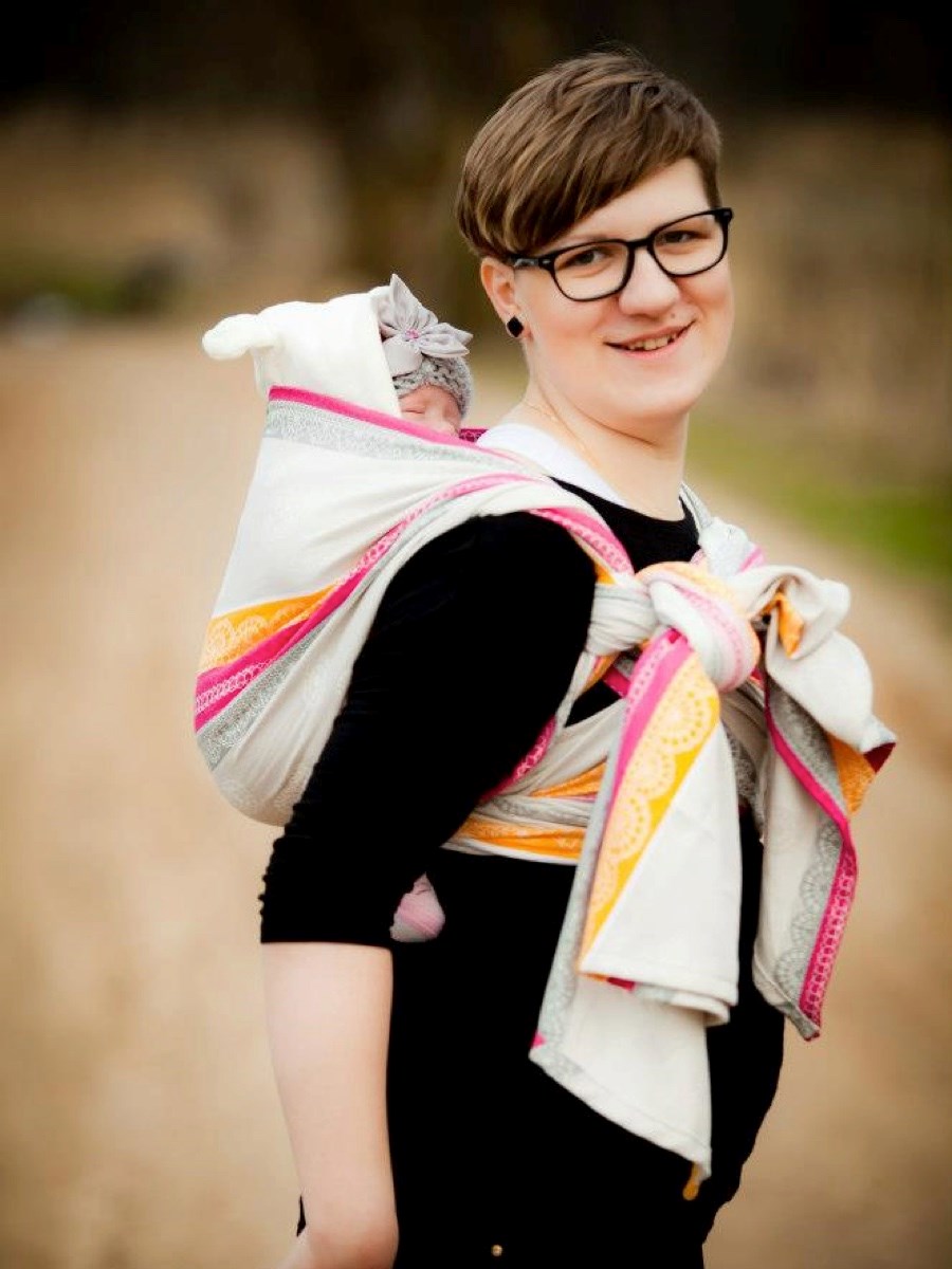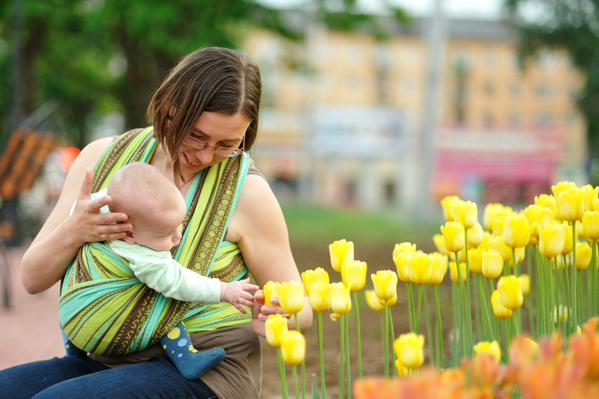 История тканевых переносок для детей насчитывает несколько тысячелетий. Первые их изображения встречаются еще на египетских барельефах второго тысячелетия до нашей эры, мы видим детей в переносках из ткани на картинах художников Возрождения. У различных народов часто существуют всевозможные приспособления из ткани для ношения ребенка на себе: в Китае это прямоугольник с четырьмя лямками под названием «май-тай» и «май-слинг», в Африке — платок «канга», в Корее и Вьетнаме — «подеги», у цыган — шаль «дыкхло», в Японии — «онбухимо», в Южной Америке и Мексике — «ребозо». На Руси детей носили в специальном переднике, который назывался «подол», отсюда и пошла поговорка «принести в подоле». Чем же актуальны и полезны в наши дни подобные переноски? 9 месяцев вынашивания в утробе жизненно необходимы малышу, но и после появления на свет он не самостоятелен и ему очень важна забота и практически непрерывный контакт с матерью. Людмила Петрановская в своей книге «Тайная опора: привязанность в жизни ребёнка» называет следующие за рождением 9 месяцев «донашиванием»: «В этот период ребенок почти не изменил своего положения по сравнению с беременностью, он все там же, тесно слит с матерью, только переместился по внешнюю стенку живота. И там ему надо побыть еще какое-то время». Младенец хочет находиться рядом с матерью, есть не раз в три часа, а когда проголодается (а это может произойти и через 10 минут после кормления, и через 3,5 часа!), слышать стук материнского сердца, ее голос, чувствовать ее запах. И часто радость от первой долгожданной встречи сменяется у мам разочарованием или даже слезами, потому что у современной женщины есть множество разных дел, которые очень сложно делать с младенцем на руках, или ребенок стремительно набирает вес и время комфортного для мамы ношения на руках становится все короче. Кто-то хочет быть мобильной и не выключаться из рабочего процесса, у кого-то есть старшие дети, требующие маминого внимания и заботы, кому-то просто в течения дня нужно время на то, чтобы приготовить себе еду. И перед мамой встает сложный выбор, как же удовлетворять основную потребность малыша — находиться рядом с мамой — не в ущерб себе или близким? В этом случае коляска, придуманная в XIX веке, не спасает и мама возвращается к старому и проверенному веками способу ношения младенца на себе. И тут встает следующий вопрос: как из разнообразия существующих переносок, которые предлагают современные производители, выбрать то, что не навредит младенцу и будет удобно маме? Кенгурушка, слинг, май-слинг, слинг с кольцами, эрго-рюкзак — чем они различаются и различаются ли? И что из этого будет безопаснее всего для новорожденного? Выбор переноски Прежде всего, при выборе переноски нужно ориентироваться на безопасность младенца. Физиологичное положение новорожденного, комфортное и безвредное для него, выглядит следующим образом: если выложить только что появившегося на свет ребенка маме на живот, то мы увидим, что его ножки согнуты в коленях и разведены, коленки прижаты к животу, спинка скруглена, а ручки прижаты к груди. Это положение наиболее безопасно и естественно для младенца, если мама хочет носить его на руках. В этом случае маме нужно будет руками удерживать ребенка: одной рукой в районе лопаток и верха спины, страхуя шею и голову, а второй рук