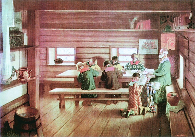 Как водится, школы с институтами примут жаждущих знаний студентов в начале сентября. Давно ли так повелось? Что стоит за этой датой, которая для нас так же незыблема, как и новый год 1 января. И как обстоят дела у соседей по планете? Приняв крещение от Византии, Русь переняла и константинопольскую эру – систему летоисчисления «от сотворения мира». Согласно этой системе, если Адам был сотворен в середине шестого дня, то Христос воплотился в середине шестого тысячелетия, значит, примерно в 5500 г. «от сотворения мира». Новый год начинался то 1 марта, то 1 сентября, что создавало путаницу в хронологии. До принятия христианства новолетие праздновали в день осеннего равноденствия (в 2013 г. это 22 сентября). Такая традиция, естественно, была связана с аграрным циклом, поскольку жатва зерновых заканчивалась в июле-августе. Петр I перенес начало гражданского года на 1 января и повелел отсчитывать время от Рождества Христова, однако не стал вмешиваться в церковный календарь. Церковный год до сих пор наступает 1 сентября старого стиля (14 сентября н.с.). Если учесть, что в какой-то момент нашей истории доступное начальное образование было церковно-приходским, то нас не удивит дата начала занятий. Б. М. Кустодиев. «Школа в Московской Руси» Но это у нас. А как в других странах? Одновременно с нами начинается учеба у ближайших западных соседей — на Украине, в Белоруссии, Прибалтике, Чехии – и в Китае. А также в Хогвартсе, где по случаю начала учебного года проходит большой банкет, шляпа поет песню, а директор произносит прочувственную речь. К занятиям юные волшебники приступают на следующий день. В Болгарии и Франции дети идут в школу в середине сентября. Некоторые болгарские родители и учителя считают, что за три месяца каникул знания выветриваются из юных голов, и предлагают немного сократить время отдыха. Школьники, наоборот, протестуют и требуют ввести еще один перерыв осенью в дополнение к зимним и весенним каникулам. В первый день учебы проходят торжественные мероприятия: поднятие государственного флага, официальные речи и развлекательные представления для первоклассников. В холодных скандинавских странах и Финляндии каникулы заканчиваются уже в середине августа, а в жарких Италии и Испании продолжаются до октября, причем нет фиксированной даты начала занятий. В Германии, растянувшейся от Альп до Северного моря, каждая из 16 федеральных земель устанавливает свои сроки в пределах августа-сентября. В Англии и Канаде школы ждут учеников в первый вторник сентября. Этому предшествует День труда, который отмечается на Американском континенте в первый понедельник сентября. Появился этот праздник еще во второй половине XIX века как выходной для рабочих. Американские учебные заведения самостоятельно определяют дату начала работы. Они обязаны приступить к занятиям до середины сентября и отработать 180 дней. Школьной формы нет, как нет и единой программы обучения и единственного утвержденного учебника. Совет граждан города обсуждает и рекомендует книги для обучения. Младшие школьники не получает оценок, поскольку считается, что это непедагогично. Знания старшеклассников и студентов оцениваются в пойнтах (4.0, 3.0, 2.0, 1.0, 0.0), степенях (Excellent, Good, Average, Passing, Failing) или буквах (A, B, C, D, F). В Китае, наоборот, школьная форма обязательна для всех; каждая школа имеет свой 