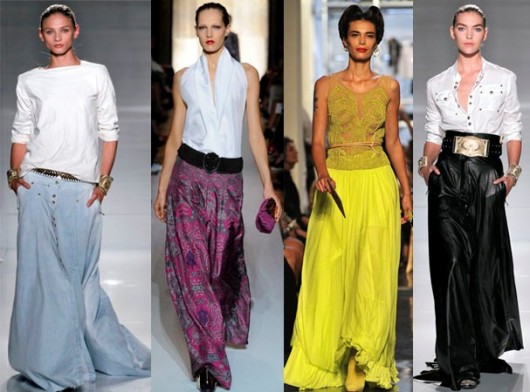 Юбка-макси может быть как прямой, так и широкой, просторной.