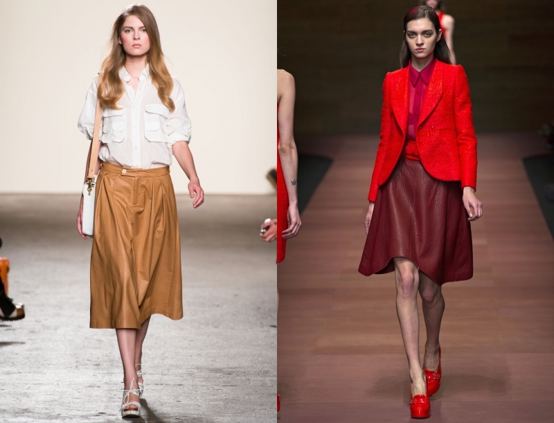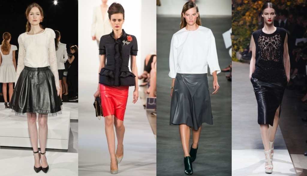 Модельеры представили кожаные юбки разных цветов и длины, на любой вкус.