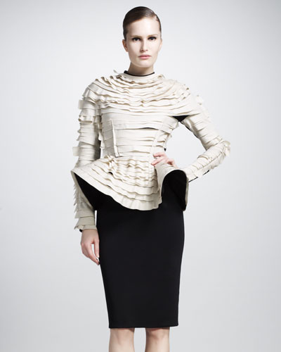 Не только для худеньких дам существует баска, чтобы визуально создать округлости, как бы вы меня не убеждали! Для женщин с типом фигуры А (Груша) зачастую проблематично подобрать одежду так, чтобы бедра её полностью “одобрили”, то есть не перетягивали всё внимание на себя. Несмотря на то, что баска по идее должна увеличивать низ, но оказывается, если её правильно выбрать, то очень даже наоборот! Важна и длина баски и то, откуда она начинается. И длина юбки, конечно, тоже. Вообще баска капризна к пропорциям, да. Она точно так же капризна, как сама фигура типа А. Но если верно подобрать, получается очень красиво.