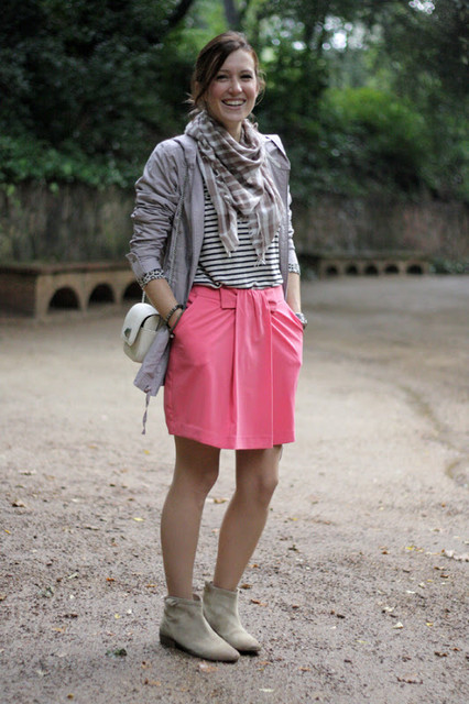 Обувь, которой словно и нет на ногах — это обувь цвета нюд (nude, телесного цвета, максимально близкого по тону к цвету вашей кожи). Такая обувь визуально удлиняет ноги, создает ощущение легкости образа в целом. Сочетается такая обувь с абсолютно разной одеждой, и даже джинсами, и с любыми цветовыми решениями наряда. Когда я говорю о такой обуви, я подразумеваю в основном обувь для теплого времени года (или же обувь для торжественных, деловых мероприятий, когда нет строжайшего дресс кода): лодочки, балетки, лоферы. Но я обратила внимание, что и в холодное время года более светлые оттенки к ногам более благосклонны, нежели их классические, более темные соседи, которые могут добавить визуальной тяжести ногам. Светло-серая, светло-коричневая и светло-бежевая обувь и в холодное время года очень выгодно смотрится. Непрактично — скажете вы, но здесь всё зависит от климата, степени обработки обуви, фактуры, образа в целом. В преддверии лета очень рекомендую приобрести обувь телесного цвета, если у вас такой еще нет в гардеробе.