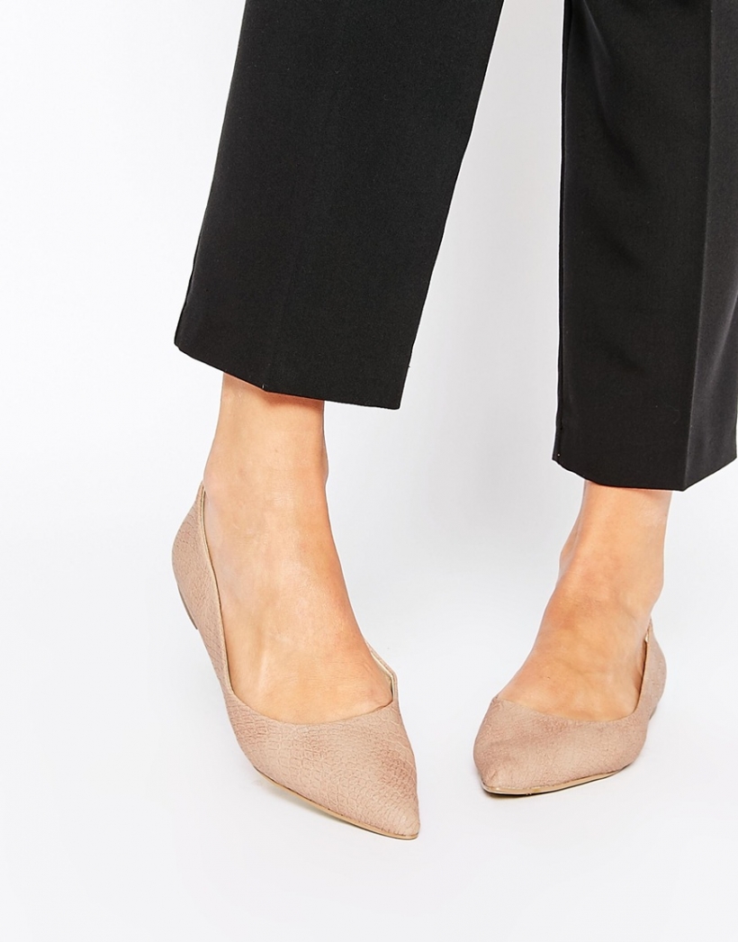 Острые носы ассоциируются у многих с 90-ми, поэтому вызывают скепсис. Но после модного весенне-летнего показа Марка Джейкобса в 2013 году остроносый тренд облетел весь мир. Несмотря на всю ту же плоскую балетную подошву, аккуратный острый нос, в отличие от привычного и более расслабленного, круглого, очень красиво оформляет ногу, делая образ утонченным и собранным. Высокие красавицы тут же подхватили эту идею, ставшую для многих женственной альтернативой шпилькам. Но и для невысоких женщин такой вариант можно смело использовать с платьями и юбками, не боясь при этом выглядеть коротышкой.
