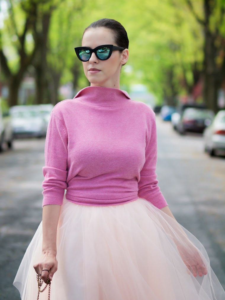 Не думаю ,что на модных посетительницах кофты были именно наоборот т.к. особенность кроя женской одежды в том числе и трикотажа, выглядело бы кургузо как на фото с розовой кофтой(пройма задом на перед и на грудь нужен объём) так что модели выполняются специально задом на перёд, грудь назад не передвинешь:) А туфли-лодочки ассоциируются с 60-ми,а не с 90-ми.