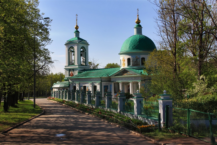 Еще одна достопримечательность смотровой площадки – храм Живоначальной Троицы. Здание в стиле классицизм было построено незадолго до Отечественной войны 1812 года; здесь перед советом в Филях молился Кутузов. Эта церковь упоминается и у Ивана Шмелева.