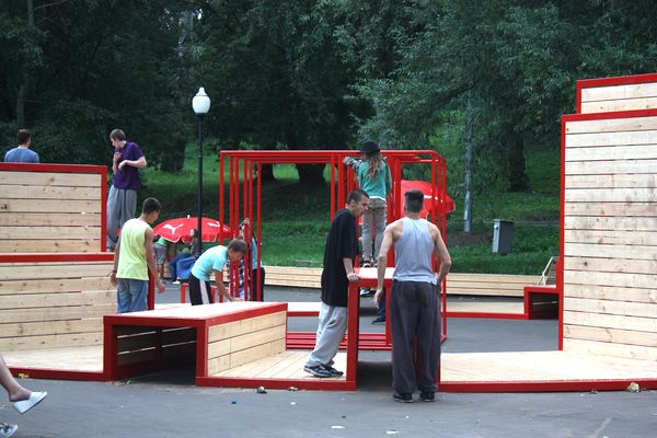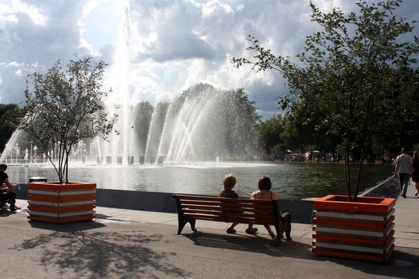 Мы давно хотели посмотреть на обновленный ЦПКиО, но откладывали, не желая толкаться в толпе. А потом все-таки решились съездить и не прогадали! Но по порядку. Добираться до парка удобнее всего не с одноименной станции метро, а с соседней «Октябрьской». Надо выйти на Крымский вал и минут 5 идти налево вниз. Таким образом можно достичь центрального входа, совершенно не встречаясь с лестницами. Это идеальный маршрут для тех, кто с коляской. Парк в начале 1920-х годов Идти от «Парка культуры» чуть сложнее: придется преодолеть несколько десятков ступенек при выходе из метро и пройти по Крымскому мосту. С моста открывается шикарный вид в сторону центра с одной стороны и Воробьевы горы с другой, но придется терпеть шум и выхлопы автомобилей. Третий вариант – для тех, ко ничем не обременен и не боится долгих прогулок: к дальней от центрального входа части Парка Горького можно подойти от Фрунзенской. Этот маршрут предоставит возможность прогуляться по пешеходному Андреевскому мосту. И вот мы у входа. Но сначала — немного истории. Центральный вход встречает цветами и ненавязчивой музыкой Основанный в 1928 году, парк занимает территорию около 100 гектаров и является одним из крупнейших в Европе. В 1923 году будущая территория парка была обустроена для проведения первой Всероссийской сельскохозяйственной выставки под руководством академика И.В. Жолтовского. Пять лет спустя территория выставки, Нескучный сад и прилегающая часть Воробьёвых гор были объединены в ЦПКиО, а в 1932 году парку присвоили имя Максима Горького. Кроме Жолтовского над планировкой парка трудились архитекторы Власов и Мельников (его планировка партера парка сохранилась до наших дней, хотя в ней не заметно ничего от любимого архитектором авангарда). Основатели парка воплощали в жизнь идею создания «комбината культуры» под открытым воздухом. Напротив главного входа - огромный фонтан. Так задумали еще в 1920-е годы К середине ХХ века ЦПКиО сал целым городком с собственной милицией, пожарной и медицинской частями, почтой и сберкассой. Для посетителей работали аттракционы, выступали коллективы художественной самодеятельности. Проводились уроки танцев, соревнования по бегу в мешках или на одной ноге, шахматам и так далее. Можно было купаться в Москва-реке, кататься по прудам на лодках и байдарках. Почта в Парке Горького Орлы,снятые с кремлевских башен, некоорое время были выставлены в Парке Горького Однако к концу советской эпохи парк стал довольно заурядным. В девяностые и двухтысячные парк функционировал по накатанной, пока его директором не стал Сергей Капков. Капковские преобразования, вызвавшие бурю дискуссий, кардинально изменили имидж парка и привлекли в него массу народа. Что же мы в парке увидели? Роллеры и детские коляски мирно разъезжаются на широких площадках В 1950-е годы парк тоже был многолюден Во-первых, парк стал очень чистым. И взрослым приятно, и детям можно дать поползать — хоть по дорожкам (только осторожно, их придется делить с роллерами и велосипедистами) и по газонам, ходить по которым официально разрешено. Во-вторых, парк стал очень стильным. Продуманный дизайн всех объектов — от фонтанов до урн очень радует. В-третьих — появилась масса всевозможных развлекательных «фишек» — от проката веломобилей до аэродинамической трубы, а также разных человеколюбивы