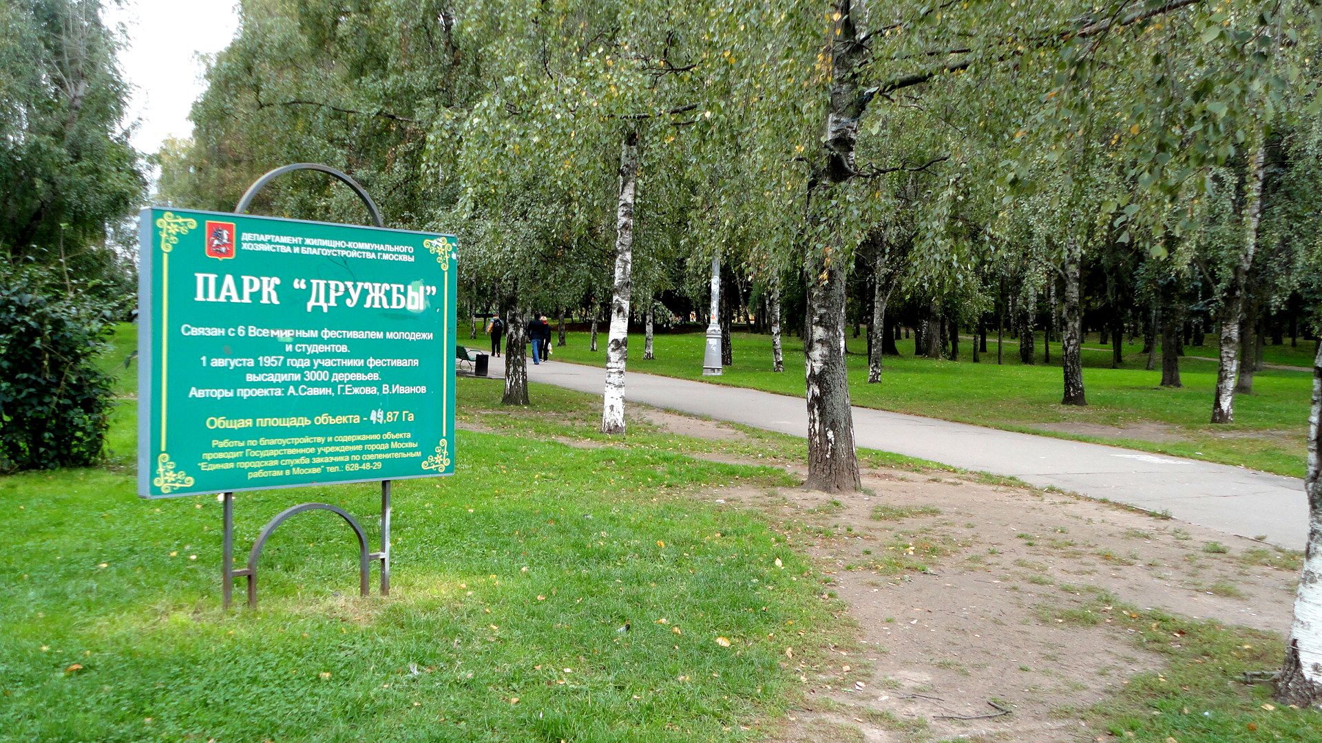 Парк заложили в 1957 году делегаты VI Всемирного фестиваля молодёжи и студентов. Поэтому тут много символических объектов: монумент памяти воинов, погибших в Афганистане, скульптурные композиции: «Хлеб и плодородие» (по эскизу Веры Мухиной) и «Фестивальный цветок», монумент венгерско-советской дружбы, памятники Мигелю Сервантесу (кстати, копия мадридского оригинала) и герою киргизского эпоса Манасу, аллея имени Алисы Селезнёвой. Можно даже устроить семейный квест: кто быстрее найдет все интересные памятники парка.