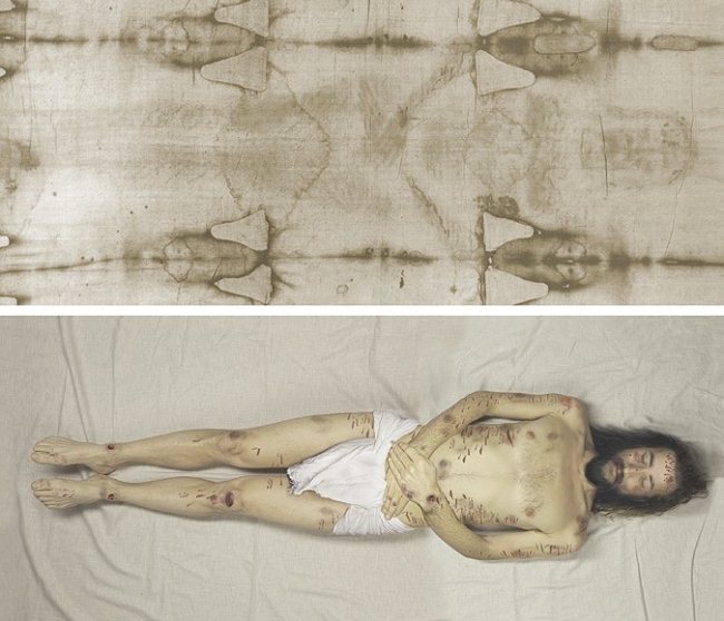 Группа криминалистов изучила само изображение тела. Вот их выводы: человек умер от удушья. Часов за 12 до этого двое солдат били его по спине римскими флагрумами (flagrum taxillatum — «бич, наводящий ужас», короткий кнут с раздвоенными полосами и утяжелителями на концах) – кровь успела запечься. На правом плече след – как если бы на него упал тяжелый брус. Колени сбиты от падения на землю. Запястья и ступни имеют сквозные раны. Кровь текла по рукам вниз. Вид пятен крови и кровоподтеков соответствует физическим свойствам этой жидкости. Вряд ли средневековый художник стал бы изображать их настолько натурально. К тому же тело на плащанице обнажено, а Христа всегда изображали в набедренной повязке. Логично предположить, что художник последовал бы канону. К тому же изображение плоскостно, ткань не пропитана красками, изображение будто отпечатано на ней.