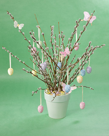 Не нужно сбрасывать со счетов и веточки вербы. В вербную неделю накануне Пасхи эти веточки появляются в каждом доме и становятся своеобразным пасхальным украшением. Из веточек вербы можно сделать пасхальное дерево или композицию посложней с живыми цветами.