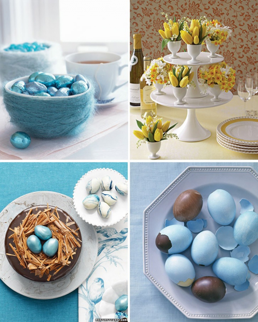 Каждый год весной мы празднуем Светлое Христово Воскресение — Пасху. Наверняка многие хотя бы раз задумывались о том, какие еще существуют пасхальные традиции, помимо покраски яиц, выпечки куличей и приготовления творожного лакомства. Очень поднимает пасхальное настроение украшение интерьера жилища. Какие декоративные решения помогут создать праздничный уют в доме в этот светлый день? В давние времена на Руси перед наступлением Пасхи в первую очередь дом тщательно убирали и украшали. Отсюда и пошло выражение «Чистая Пасха» или «Светлая Пасха». Существовал такой интересный обычай, причем не только на Руси, но и в других странах по всей Европе: ранней холодной весной, когда природа еще не дала сочной зелени и спала, в небольшом ящике с землей люди проращивали семена, чаще всего использовали овес. На сочные зеленые ростки люди клали заранее покрашенные яйца, а также ставили цветные фарфоровые и деревянные фигурки птиц и зверей. Получался своеобразный миниатюрный садик, который радовал детей и взрослых яркими красками. Вы можете использовать вместо ящика длинный горшок — эффект будет тот же самый. Это пасхальное украшение вашего дома напомнит о пришедшей весне и пробуждении всего живого. Для проращивания зерен можно использовать яичную скорлупу, получается довольно мило. Понадобится пластиковый или бумажный контейнер для яиц, скорлупа, немного земли и семена для зелени. В каждое отделение лотка для яиц нужно положить по яичной скорлупе. На дно скорлупы подсыпать землю и прорастить в ней зелень или, к примеру, пересадить мелкие комнатные однолетники. Интересным способом украшения дома к Пасхе может стать комбинирование ярких яиц и цветов: в широкую прозрачную вазу (можно также использовать банку или корзинку) плотно укладывают разноцветные яйца, а сверху ставят цветы и зелень, продевая стебли между яйцами, чтобы они не падали. Не нужно сбрасывать со счетов и веточки вербы. В вербную неделю накануне Пасхи эти веточки появляются в каждом доме и становятся своеобразным пасхальным украшением. Из веточек вербы можно сделать пасхальное дерево или композицию посложней с живыми цветами. Украшение дома к Пасхе не обойдется без пасхальных корзинок. Их дно выстилают слоем земли и вставляют стебли весенних живых цветов. Чтобы продлить корзинке жизнь, можно использовать цветы в горшочках, они не завянут через несколько часов и будут радовать хозяев и гостей дома своей красотой. Также используют и искусственные растения. Далее такую композицию оформляют пасхальными яйцами, веточками вербы, лентами и цветными бантами. При этом желательно выдержать единую цветовую гамму или же играть на контрасте цветов. Чтобы привлечь ребенка к приятным праздничным приготовлениям, предложите ему сделать пасхальную корзинку из бумаги, цветного картона или сплести ее из длинных бумажных полос. В день Светлой Пасхи дом обязательно украшается искусственными, а еще лучше — засушенными цветами. Конечно, многие предпочитают живые цветы, однако именно такова традиция. Помимо цветов в ход на Руси шли и букетики, состоящие из засушенных ягод, а также цветные ленты пастельных тонов, раскрашенные перышки и ракушки, всевозможный мох, хвоя, ветки, лоза, зелень. Из всего этого сооружались венки на дверь, гнезда, гирлянды и букеты… В этом году я решила изготови