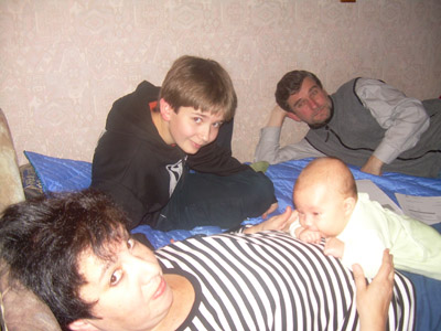 с мужем Александром, сыном Матвеем и внучкой Даниелой, 2008 год