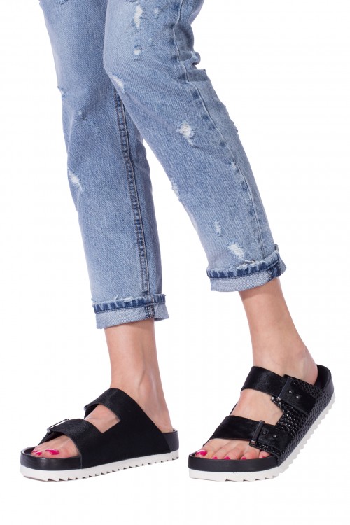 Слиперы (не путать со спортивными слипонами) – очень удобная полузакрытая обувь без шнурков на тонкой кожаной подошве и низком каблуке, которая полюбилась модницам всего мира. Изначально слиперы были тапочками (от английского slippers), но стали повседневной и удобной обувью. Слиперы могут быть бархатными, кожаными, атласными. Они прекрасно смотрятся с брюками, джинсами, шортами, юбками и платьями. Носить их принято на босу ногу. Каких только слиперов нет на улицах сегодня: с гербами, черепами, шипами, кошачьими ушами.