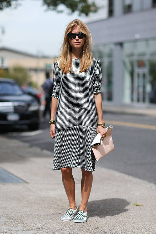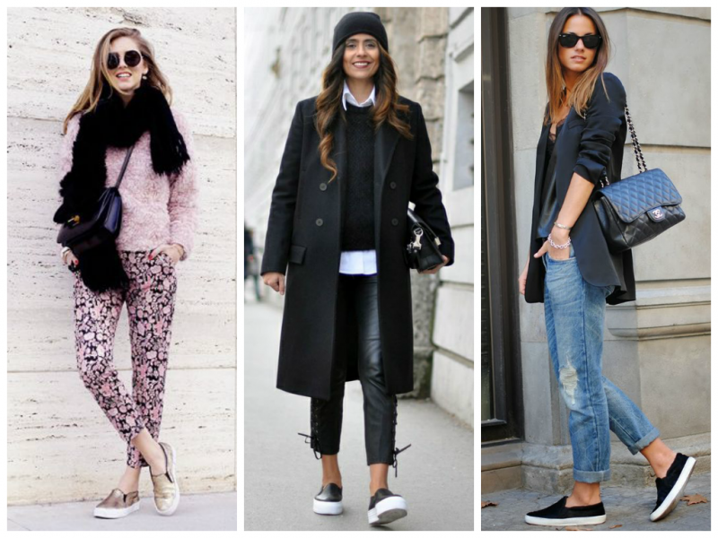 Слипоны (легкие кеды без шнурков с эластичными вставками) на пике популярности, они практичны и универсальны. Удобно носить с платьями, юбками, брюками, джинсами, комбинезонами и шортами. Изначально, в 70-х, слипоны были легкой спортивной мужской обувью, и предназначались для скейтбординга и серфинга, но сейчас эта обувь актуальна и для мужского, и для женского гардероба. Особенно здорово слипоны смотрятся с платьями-рубашками, укороченными брюками, шортами, теннисными платьями и юбками, джинсами, юбками миди.