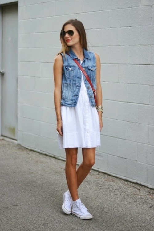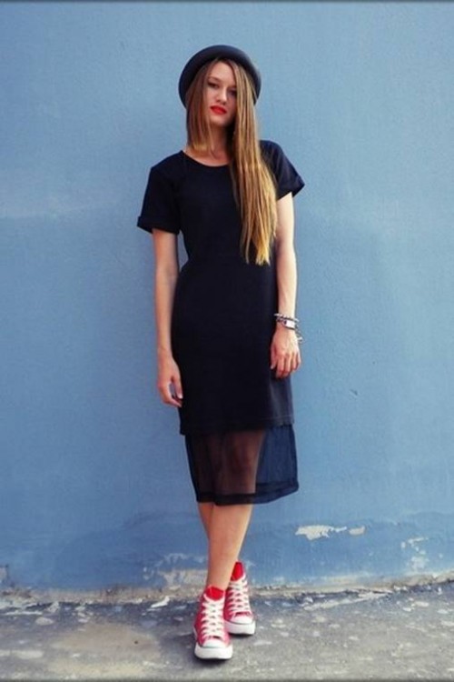 И снова нестандартное, не совсем привычное сочетание. Благодаря контрасту женственности и спортивного шика мы добиваемся лёгкого и эффектного образа. Кеды модно носить не только с платьями , но и с юбками, шортами, джинсами.