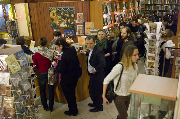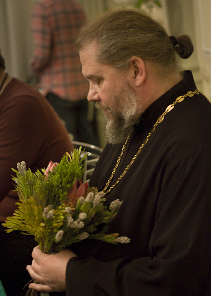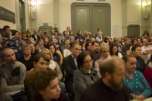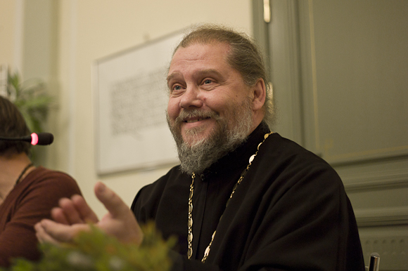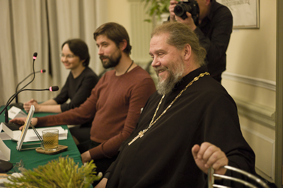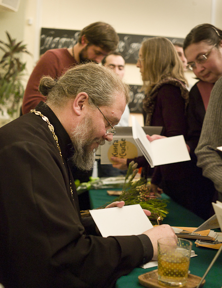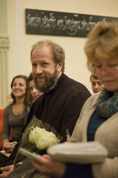 Вчера в культурном центре «Покровские ворота» протоиерей Андрей Лоргус, ректор Института христианской психологии, презентовал свою «Книгу о счастье», которая вышла в издательстве «Никея». На презентации книги о том, что такое счастье, разговаривали ведущий вечера Владимир Лучанинов, главный редактор издательства «Никея»; автор книги о. Андрей Лоргус и главный редактор портала Матроны.РУ, психолог и автор этого репортажа Лидия Сиделёва. Очередь за счастьем начиналась у самого входа в центр, а желающих приобрести книгу оказалось куда больше, чем имеющихся в продаже экземпляров. Свободных мест в зале тоже не наблюдалось, так что руководитель центра Жан-Франсуа Тири постоянно бегал туда-сюда с табуреточками, что придавало мероприятию своеобразный уют и чувство некоего первохристианского братства. Если кто не знает, Жан-Франсуа — католик, но при этом большинство православных мероприятий проходят в его центре. Мне кажется, у нас с братьями-католиками получается очень важная миссия — оставаться полюсом традиционных ценностей и уравновешивать расстановку сил в мире. И будет всем счастье. Эта тема беспокоит всех «Мне хотелось бы несколько слов сказать об истории создания книги, — с этих слов начал презентацию Владимир Лучанинов. — Тема счастья беспокоит нас, сотрудников издательства «Никея», как и всех людей. С одной стороны, мы видим, что эта тема в современном мире приобретает какие-то очень странные, зачастую нездоровые формы. Мы часто видим, как счастье связывается с какими-то внешними материальными признаками. Мы видим рекламу с успешными улыбающимися людьми — и улыбаются они потому, что, предположим, взяли кредит в банке или вдруг открыли для себя какой-либо новый супермаркет. Но не только внешние признаки счастья интересны современному человеку. Мы знаем, что направление гуманистическое, а чуть позднее позитивная психология в виде такой популяризации, родила множество разных технологий, практик, которые пытаются в человеке развить положительные черты его темперамента, характера, зачастую заставляют забыть о чем-то плохом, о травмах, о комплексах. Но по сути мы знаем, что ничего не уходит, это только складывается на глубины, поэтому такой путь является несколько странным. С другой стороны, каждый из нас знает, что есть определенные установки, связанные с учением православной церкви, которое любые попытки человека почувствовать себя счастливым относят к несовершенству его духовной жизни. Действительно, святые отцы говорили о страдании как о норме жизни христианина. В этом контексте поиск счастья действительно для многих кажется сомнительным путем для верующего человека. Итак, с этими вопросами в надежде найти ответы мы пришли к отцу Андрею. Для нас стало огромной радостью, что он сразу на них откликнулся». о. Андрей Лоргус: Моё упование здесь очень простое: мне очень хотелось бы, чтобы мои прихожане, мои друзья, мои знакомые, мои близкие улыбались, были счастливыми. Однажды — это было, наверное, лет десять назад — один мой друг пришел утром на литургию в Высоко-Петровском монастыре. После литургии, когда мы пили кофе, он сказал: «Ну и православие у вас!» Я говорю: «А что такое?» Он: «Все стоят с мрачными лицами, такое впечатление, что горе у всех. Это вот такая у вас вера?» Прошло десять лет, а я до сих пор помню это, мне это б