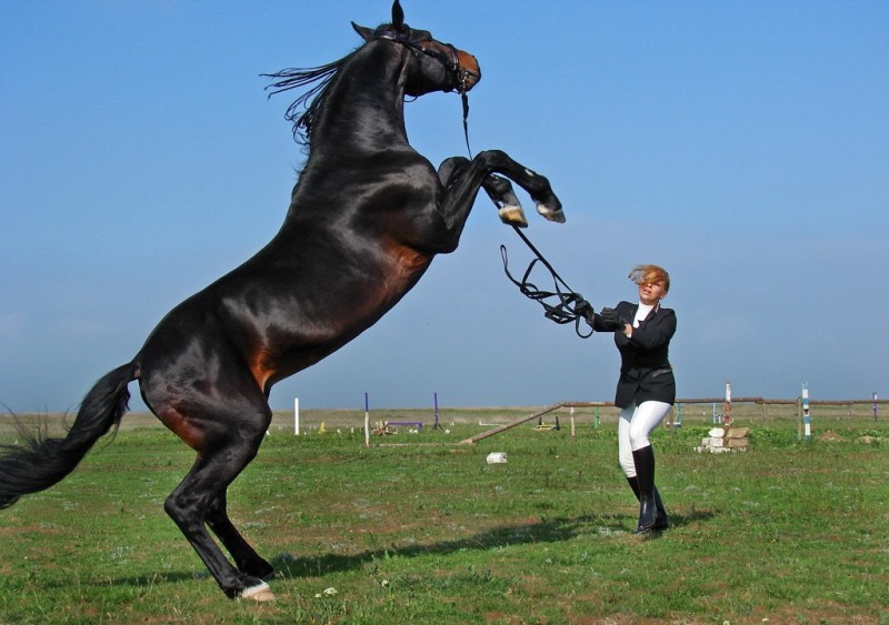 Длинная во все стороны, худая и флегматичная Партита ходила на тихую работу в самом простом комплекте сбора. Не в смысле качества сбруи — как и у всех Нининых лошадей, налобник уздечки у Партиты был украшен цветным орнаментом из кожзаменителя, а все ремешки старательно промазаны дегтярной мазью. Но никаких дополнительных корректировочных средств управления этой лошади не требовалось. Никаких чеков, капсюлей, мартингалов, шор, ногавок и прочей полезной в других случаях мелочи. Поскольку никаких дурных привычек — типа задирания головы или, наоборот, беганья носом в землю, Партита не имела, засечек никогда не ставила. Засечки — это когда бегущая рысью лошадь ранит свои передние ноги копытами задних. Но Партита, как уже говорилось, была слишком длинной, и задние ноги до передних попросту не доставали. Порода, к которой принадлежала выпускница Майкопской ГЗК, называлась «американский рысак». Слово «рысак» входит в название четырёх пород: американский, французский, русский и орловский. Может быть, по мелочи существуют и другие породы именно рысаков, но до моего слуха они не доходили. Что такое французский рысак, я не знаю, ибо у нас они не водились. Только читала, что у данной породы существуют интересные пороки хода — в частности, иноходь. При беге рысью лошадь ставит ноги диагонально: левая передняя + правая задняя, следующий шаг — правая передняя + левая задняя. При иноходи — левая + левая, правая + правая. Говорят, иноходцы очень удобны под седлом: сидишь, как на диване. Не знаю, не доводилось. Но они неустойчивы в поворотах, а рысаки-иноходцы чаще сбиваются с ноги и делают проскачки галопом, что для рысака – лошади, которая должна ходить только рысью — весьма печально. Что же касается остальных трёх пород, то русский рысак (насколько я правильно помню) был выведен путём скрещивания американского и орловского. Не знаю уж, зачем. Вероятно, селекционеры хотели получить рысака и резвого, и красивого. Потому что наша отечественная гордость — орловцы — по резвости занимают почётное четвёртое место среди рысачьих пород. А американцы — самые резвые рысаки мира — выведены не для красоты. В итоге русские рысаки заняли своё место по резвости — второе (если не считать французов, про которых на ЦМИ знали только теоретически). В нашем тренотделении наличествовали три породы рысаков. Нарядные, чаще всего — серые орловцы, неизменно радовали глаз, русские добросовестно трудились и достигали неплохих результатов, но американцев не догоняли. Американцы вблизи выглядели как сущее недоразумение: не все, но многие. Как я уже сказала, красота была принесена в жертву функциональности, и вне состязаний любоваться было особенно нечем. Были и среди них не очень страшные — например, гигантский жеребец Нут, чья холка приходилась вровень с моей макушкой, но Партита к ним не относилась. В деннике она выглядела особенно неуклюже. Сколько раз я открывала дверь её «апартаментов», столько раз вспоминала поговорку про слона в посудной лавке. Настолько полным было в этой лошади отсутствие пусть хотя бы чисто женской грации. Худая длиннющая шея, длинная морда с вечно сонным выражением, уши, сделавшие бы честь любому мулу, меланхолически развешаны «по плечам». Жиденькие мягкие грива и хвост гнедой лошади — чёрные волосы у лошадей редко бывают пышными и толстыми. К з
