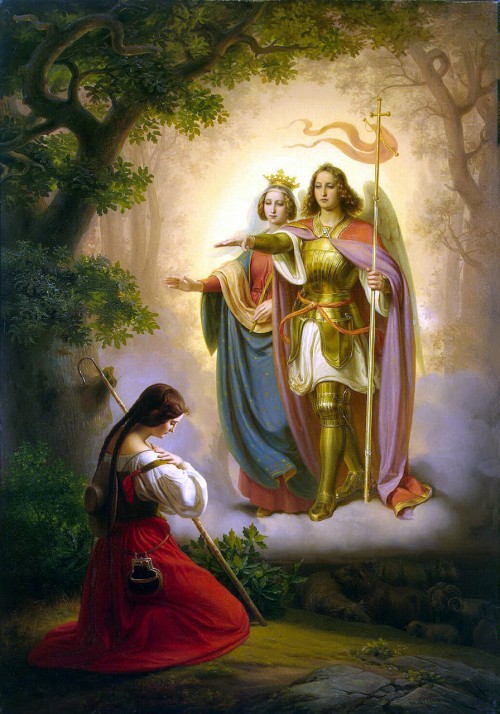 До двенадцати лет Жанна, дочь Жака д’Арка ничем не отличалась о прочих детей: росла, хорошела, посильно помогала родителям и играла с ровесниками. Говорят, что в Домреми было своё волшебное место – Дерево фей, и деревенские дети очень его любили. И, конечно же, надеялись встретить там кого-нибудь из «малого народца», несмотря на то, что сельский священник окропил это место святой водой, чтобы прогнать всю эту воображаемую «чертовщину». Позже на суде трибунал очень подробно расспрашивал Жанну о детских играх под Деревом фей, и невинные забавы крестьянской малышни очень подошли для обвинения в колдовстве. И даже показания Орлеанской Девы о том, что с двенадцати лет она слышит именно голоса святых, не смогли послужить доказательством ее праведности. А между тем Жанна утверждала, что с детства с ней говорят святая Екатерина и святая Маргарита, а порой даже сам архангел Михаил.