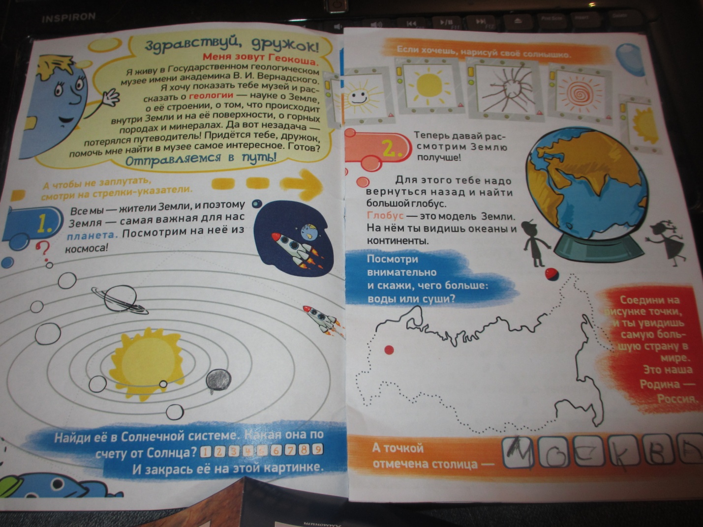Серый дождливый сентябрьский день подействовал на меня необычно: я стала искать способ, как разнообразить досуг для всей семьи. В голове крутилось несколько идей: зоопарк, зоомузей, Третьяковка…но куда-то выбираться, когда за окном так противно, – все мои друзья отреагировали на предложение крайне негативно и с большим удивлением (особенно учитывая возраст младшей дочери, которой всего 2 года и перемещение с ней имеет массу «особенностей» в виде необходимости соблюдать режим сна, питания и обязательного дополнительного транспорта — велосипеда или коляски). Тогда я решила уточнить, что же предлагают наши музеи на выходных, чтобы принять окончательное решение: ехать или нет. И так, переходя с сайта на сайт, я обнаружила программу «Всей семьей в музей», которая действует в Москве с 21 сентября и продлится до 10 ноября. Программа рассчитана на возраст от 5-ти лет. Каково же было мое удивление, когда в списке 5-ти музеев для детей от 5 до 7 я обнаружила Геологический музей: мне всегда казалось, что каменные экспонаты способны вызвать интерес только у более взрослых посетителей. Однако доверие к разработчикам проекта взяло верх, и мы рискнули с детьми поехать именно туда, и не прогадали. Во-первых, нас ждал сюрприз в виде праздника «В гостях у Геокоши», посвященного торжественному открытию учебной имитационной шахты «Академическая», а также начало записи в кружки и секции Центра развития детей и молодежи «Демидовская кафедра». Так что посещение музея для нас началось с музыкальной сказки «Алладин и тайна волшебной лампы». Позволю себе сразу небольшое отступление и скажу, что в концертном зале Геологического музея часто проходят концерты классической музыки и не только, в том числе будет и повторение сказки про Алладина, так что посетители смогут совместить посещение музея с культурными мероприятиями (что особенно актуально для родителей с маленькими детьми). Обо всех анонсах можно узнать на сайте музея. После приятного мюзикла мы отправились путешествовать по залам музея, вооружившись паспортом для нашей пятилетней дочери о том, что она является участником программы «Всей семьей – в музей», а также маршрутом «В поисках самого-самого», где указывалось, на что стоит обратить особое внимание, и шпаргалкой для родителей. Итак, мы нашли Землю в Солнечной системе, обнаружили нашу столицу на огромном глобусе, рассмотрели строение планеты внутри. Самым приятным сюрпризом явилось то, что экспонаты в 3-ем зале (Планета Земля) можно трогать! Далее мы знакомились с разнообразными метеоритами. Странно, но даже нахождение рядом с камнями, прилетевшими из космоса, кажется каким-то волшебным. Причем коллекция метеоритов начала формироваться в музее еще в 19-м веке! Самые уникальные из них: фрагмент метеорита Энсисем (упал в Эльзасе в 1492г, является самым древним из хранящихся в музеях мира метеоритов), образцы знаменитого «Палласова железа» (первый метеорит, найденный в России в 1794г в Красноярском крае), фрагменты каменного дождя Л’Эгль (выпал в 1803г во Франции) и фрагменты железного Сихотэ-Алиньского дождя (выпал в 1947г). Некоторые метеориты также можно потрогать руками. Признаюсь честно, что отследить и запомнить все временные периоды развития планеты было сложно, так что мы обратили больше внимания на окаменелые экспонаты, их причудливые формы и р